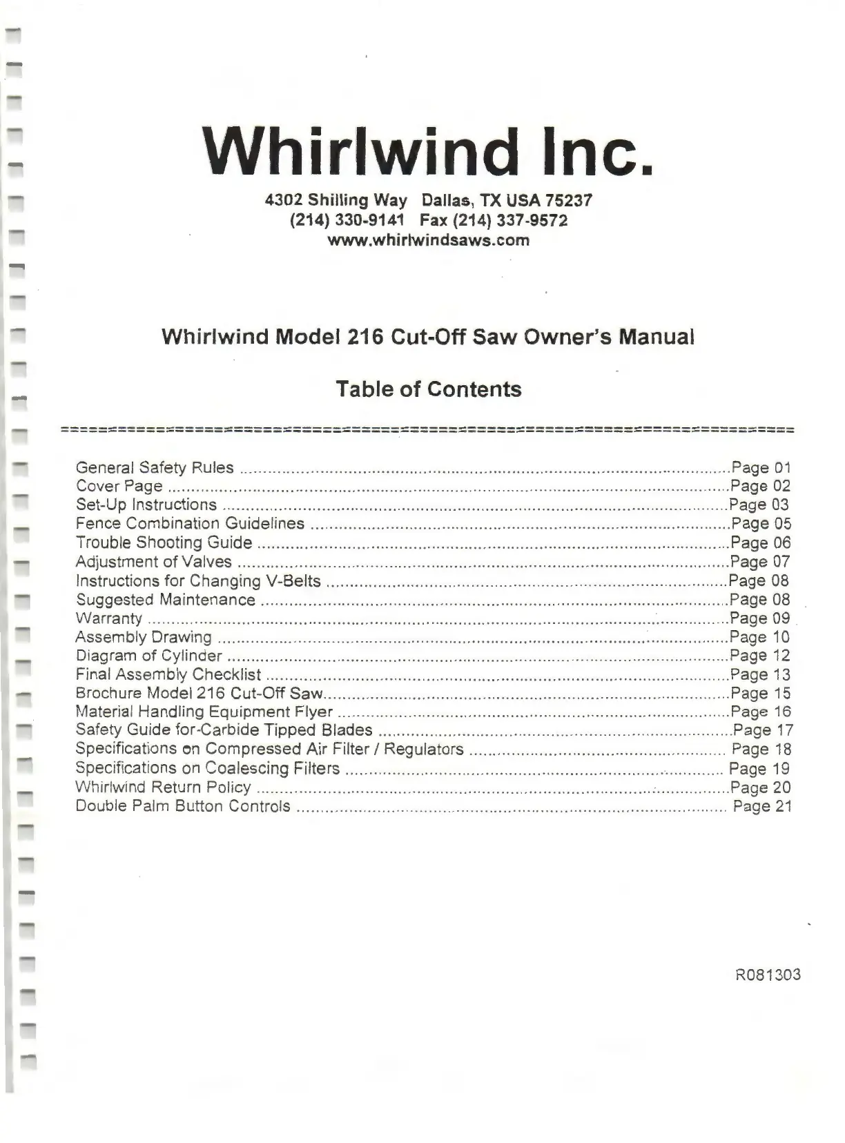 Whirlwind Model 216 Cut-Off Saw Owner's Manual