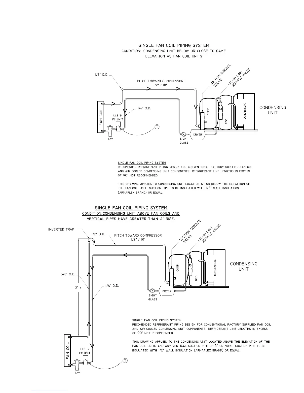 set from the coil to the condensing unit.