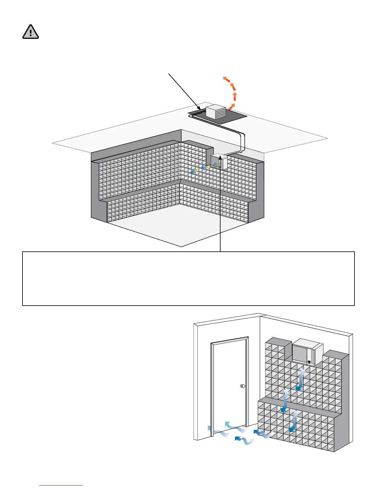 The evaporator unit must be mounted within 18“ of the top of the room in order to achieve sucient cooling.