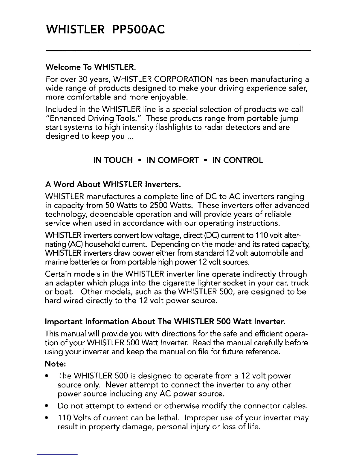 Whistler PP500AC - Page 2