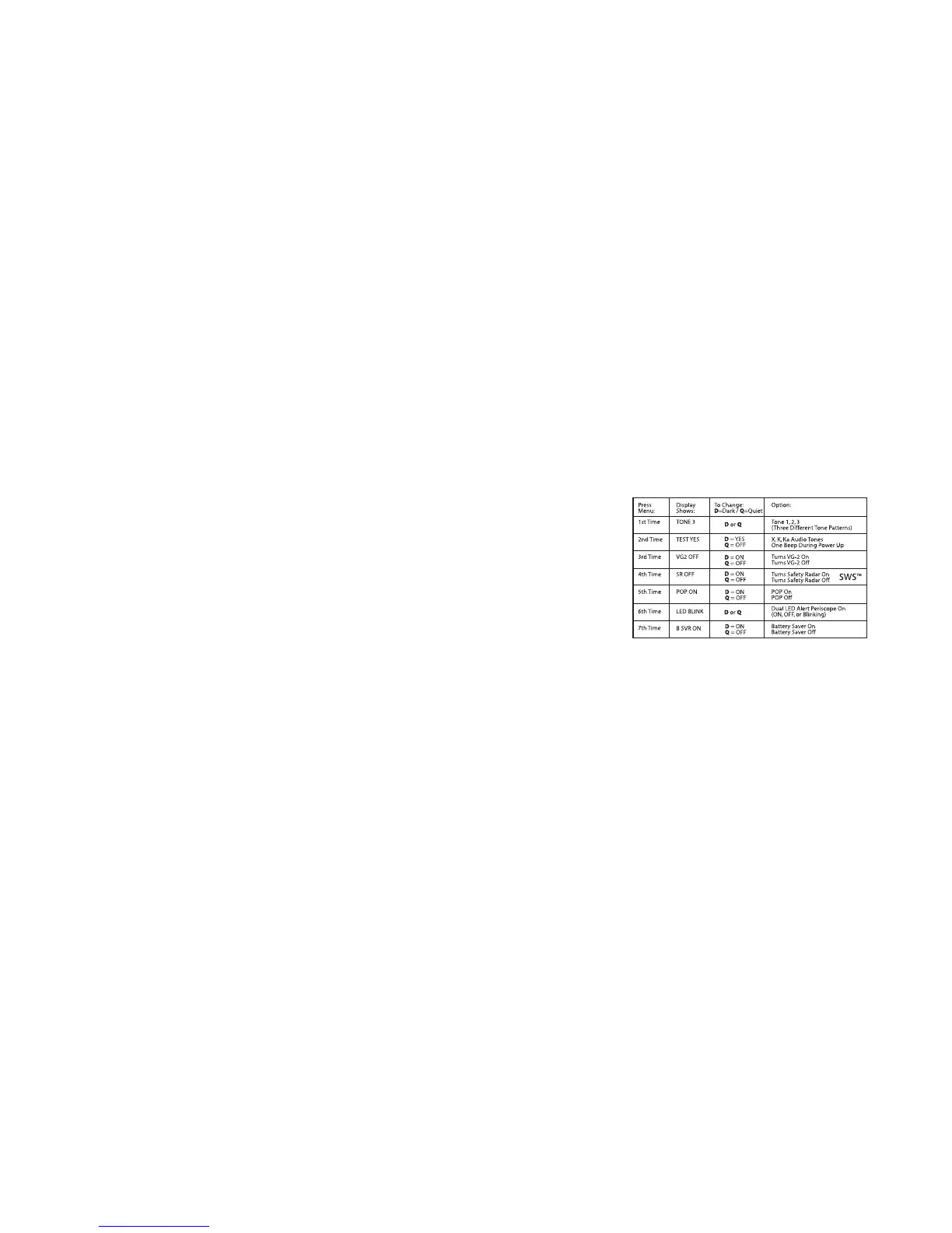 ptions such as Tone Select, Abbreviated Power Up