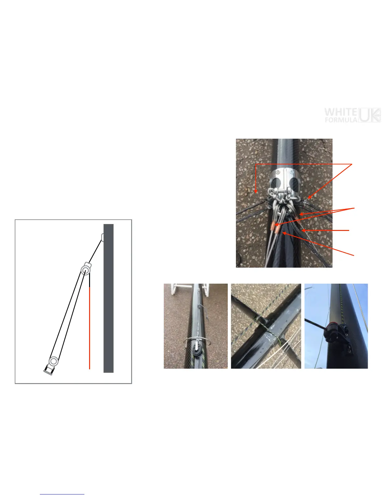 • Place the trapeze lines on each side of the mast (one red and one green on each side)