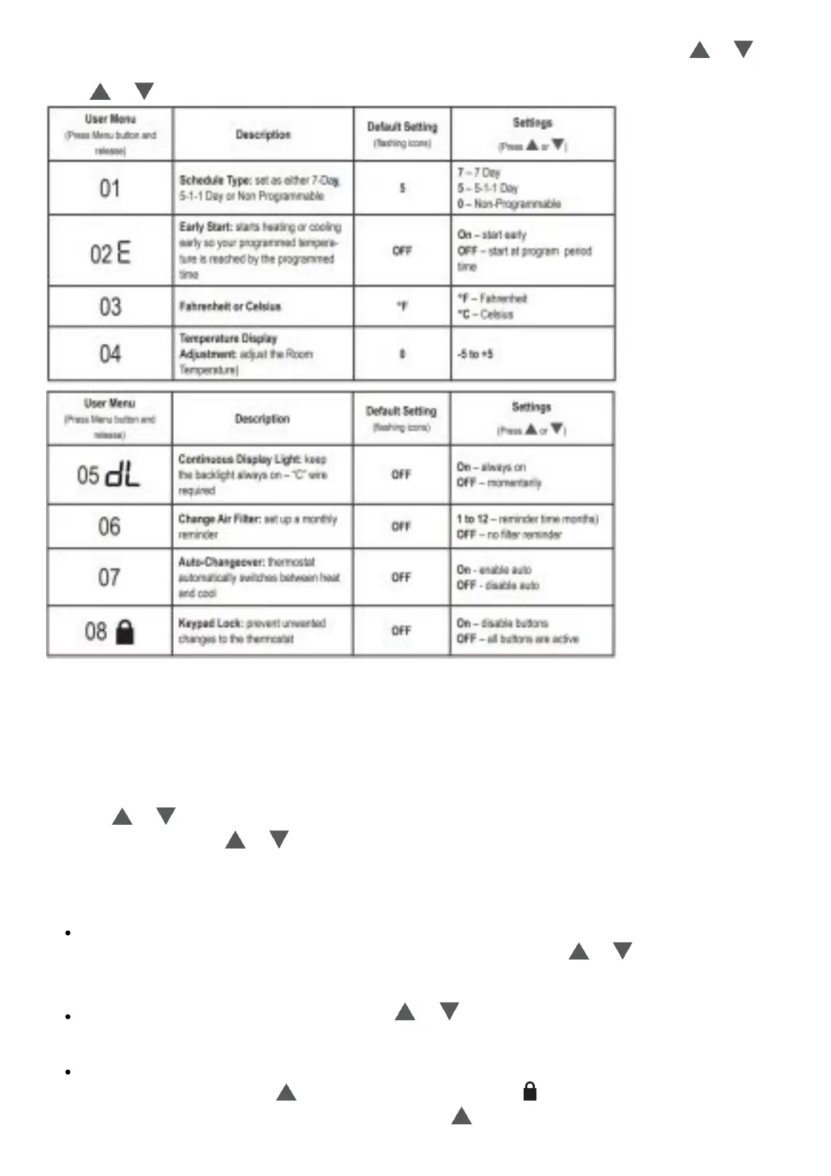 thermostat (refer to the User Menu on pages 25-26)