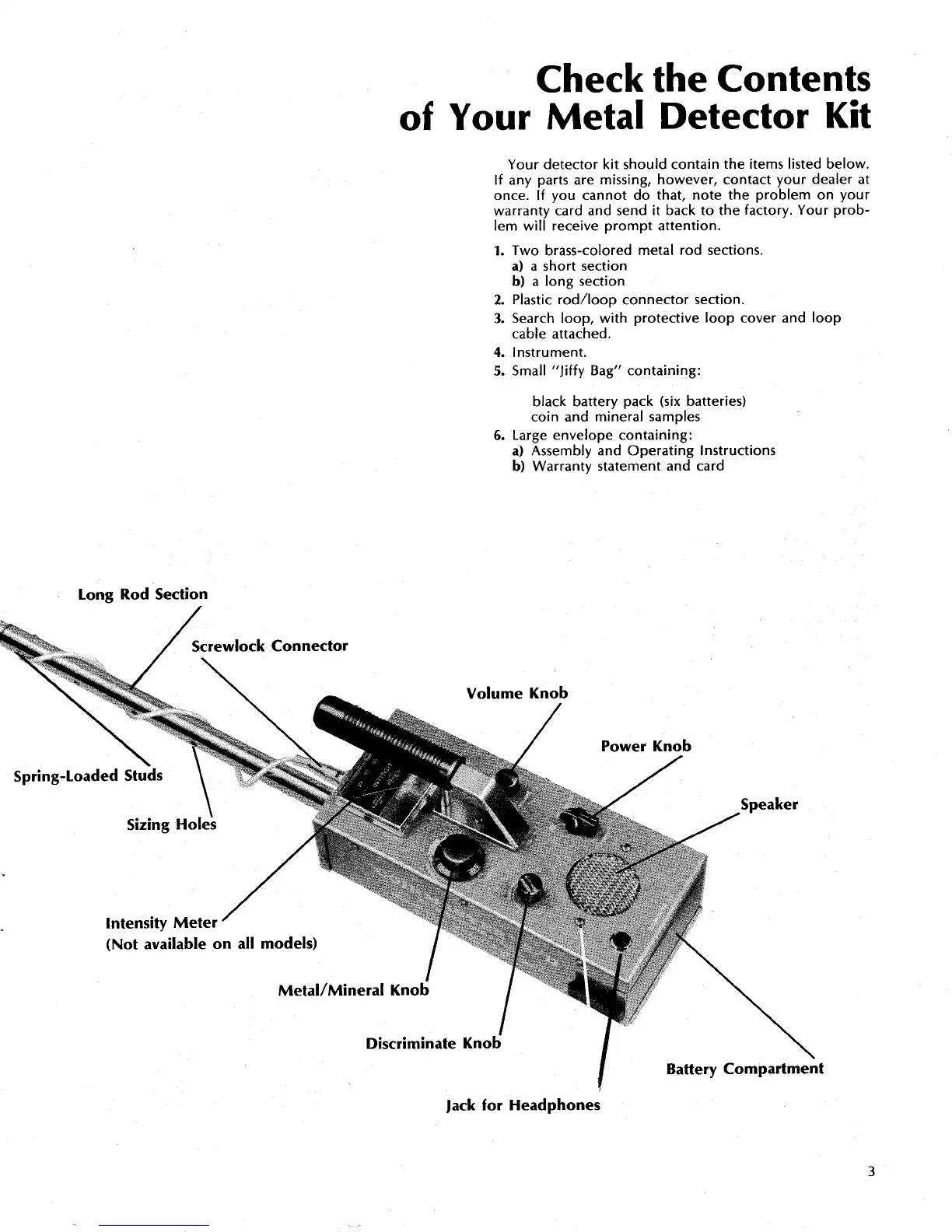 White's Coinmaster TR - Check the Contents of Your Metal Detector Kit