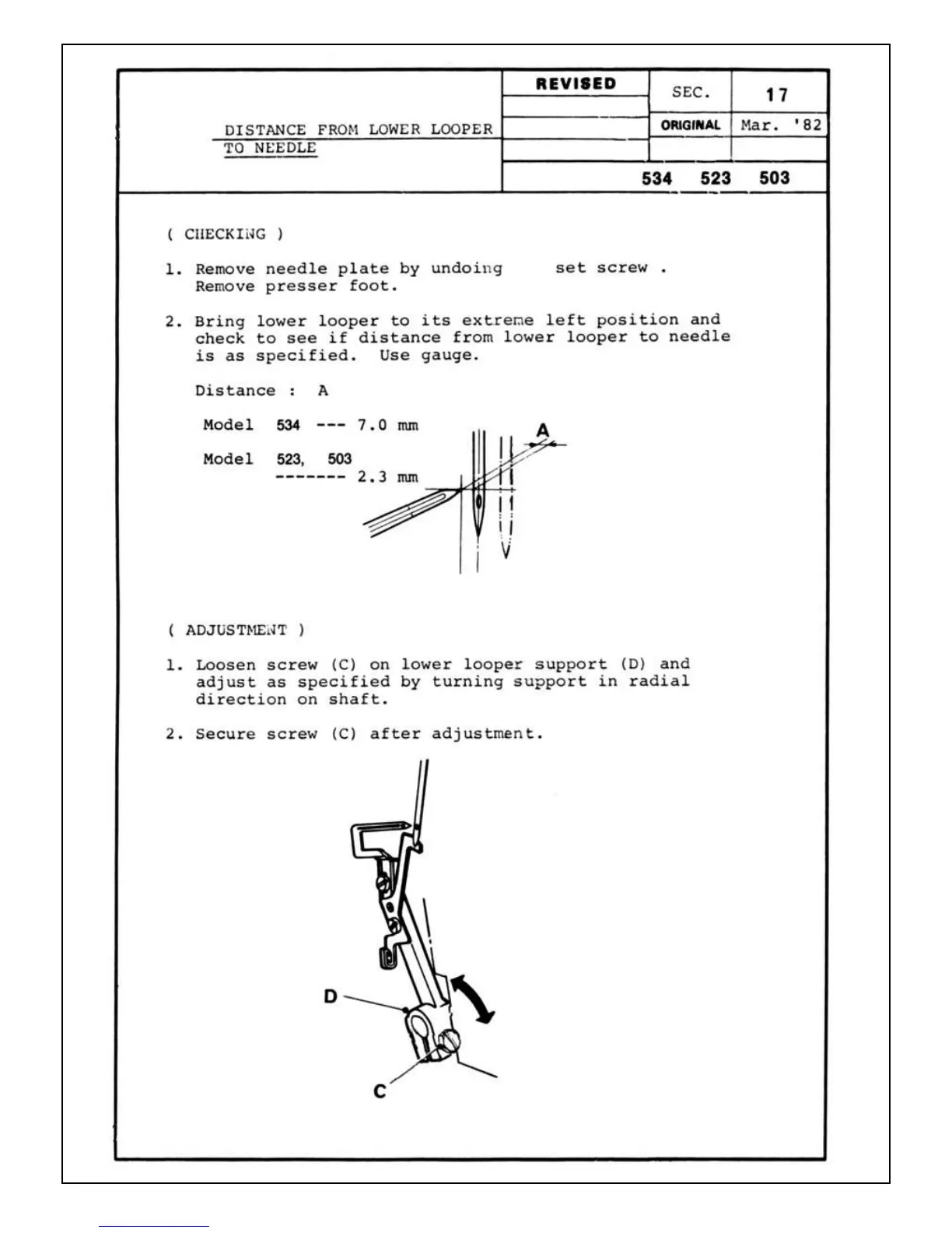 White Sewing superlock 503 - Distance From Lower Looper to Needle