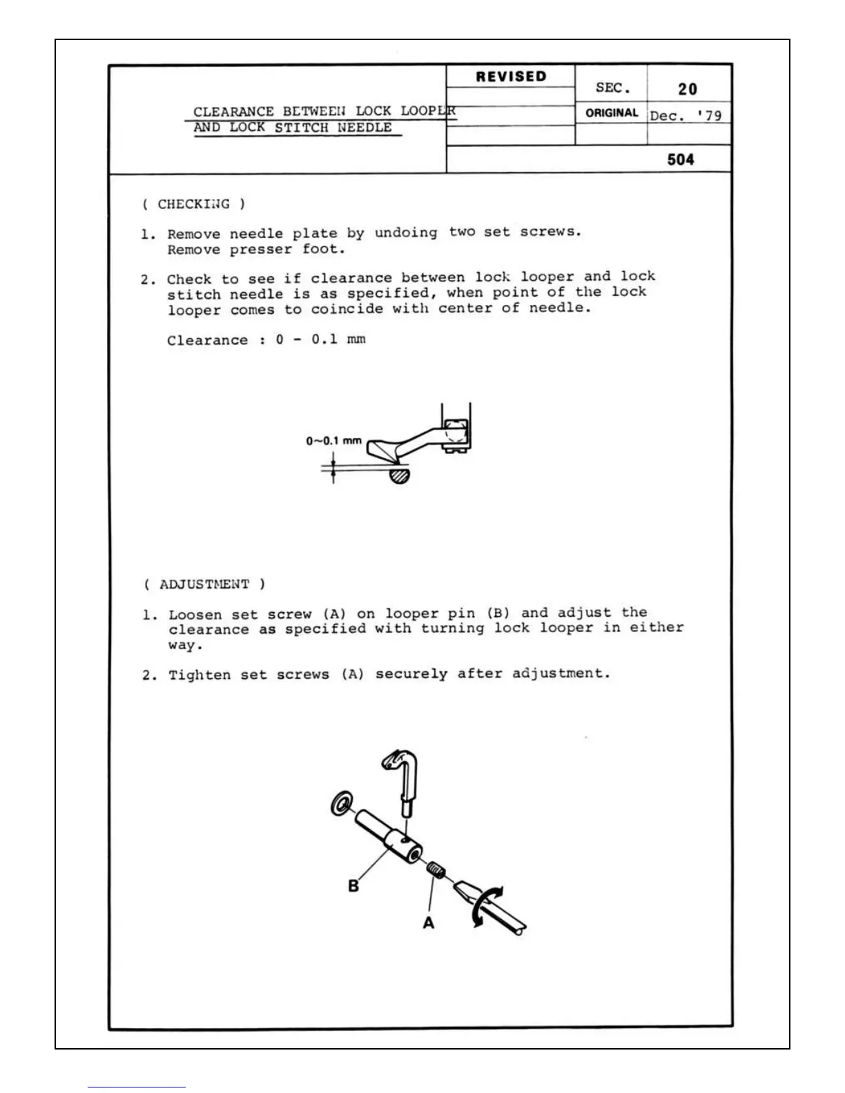White Sewing superlock 503 - Clearance Between Lock Looper and Lock Stitch Needle
