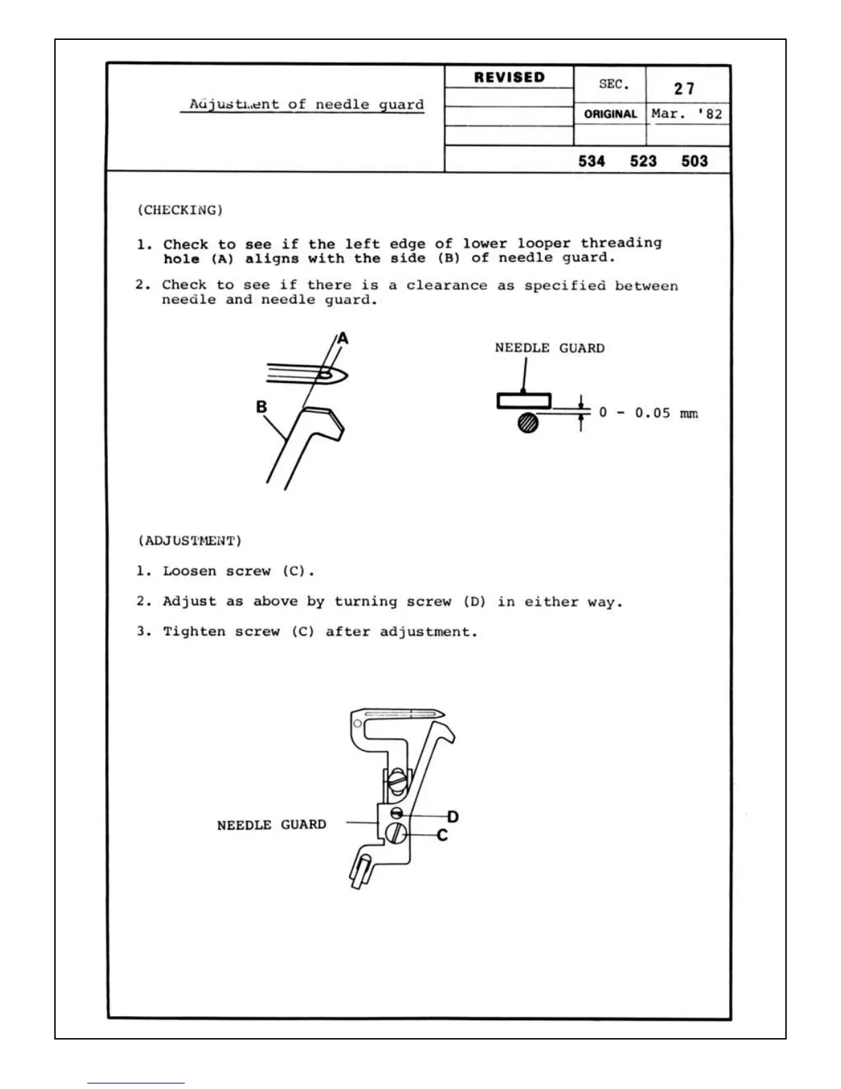 White Sewing superlock 503 - Adjustment of Needle Guard