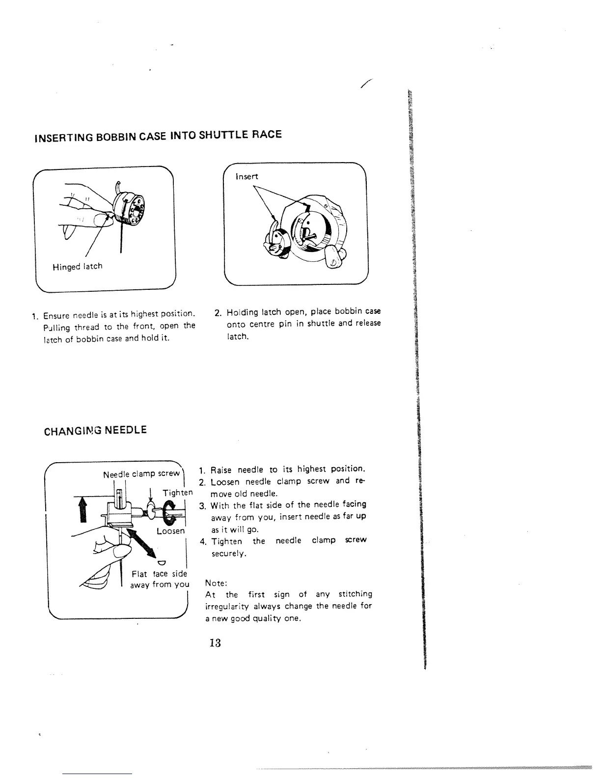 White 1000 - INSERTING BOBBIN CASE INTO SHUTTLE RACE; CHANGING NEEDLE