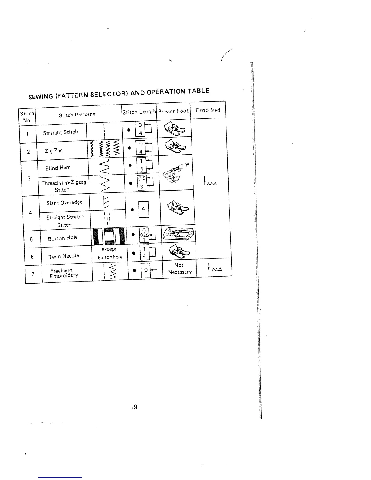 White 1000 - SEWING (PATTERN SELECTOR) AND OPERATION TABLE