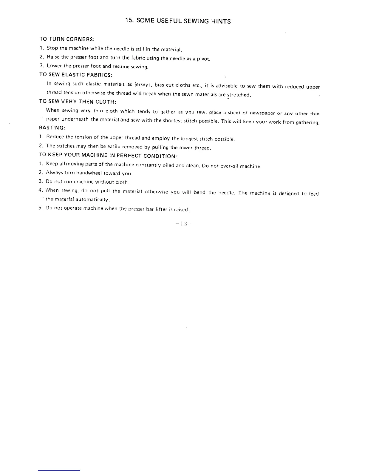 White 1066 - Some Useful Sewing Hints; To Turn Corners; To Sew Elastic Fabrics; Basting