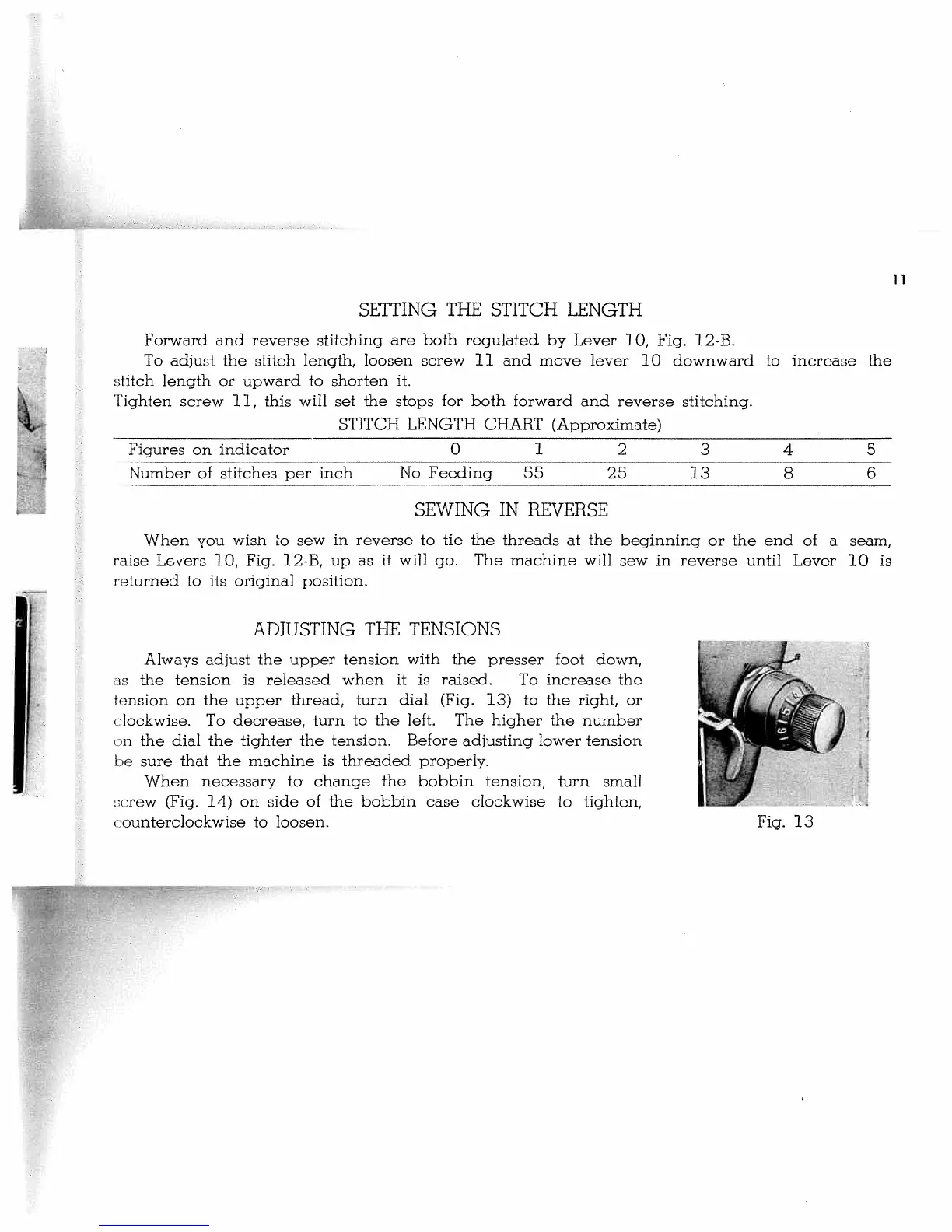 White 1268 - Setting the Stitch Length; Sewing in Reverse; Adjusting the Tensions