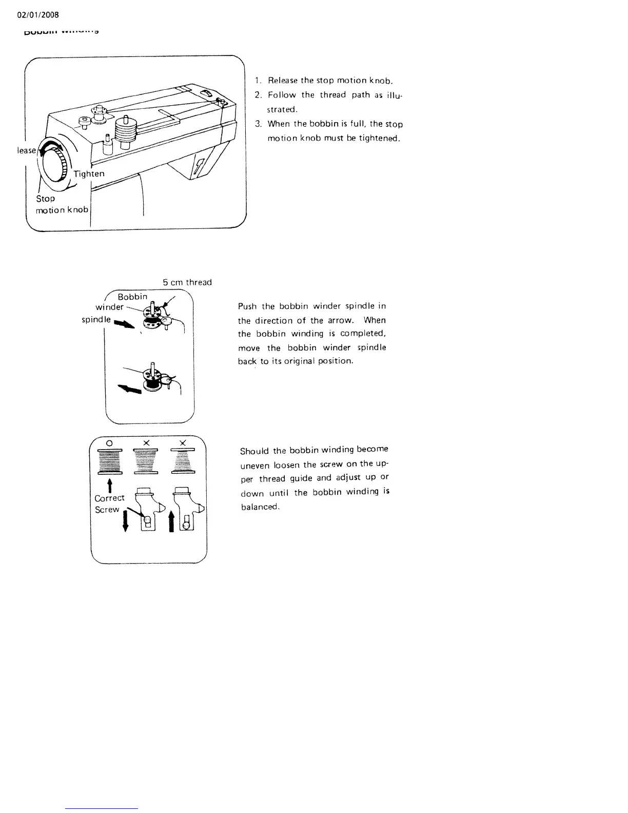 White 140 - Bobbin Winding; Winding the Bobbin; Bobbin Winding Balance Adjustment