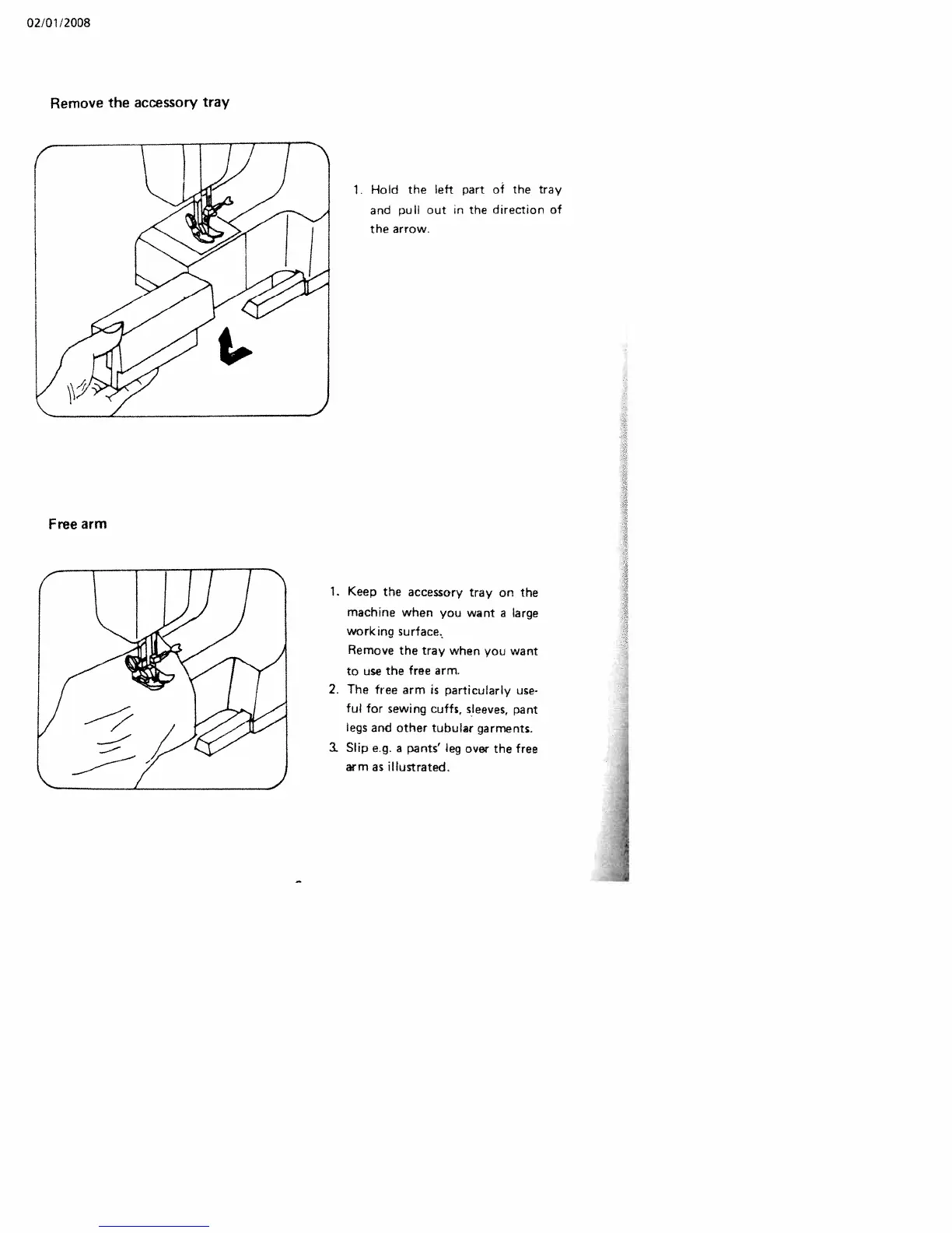White 140 - Machine Operations; Accessory Tray Removal; Using the Free Arm