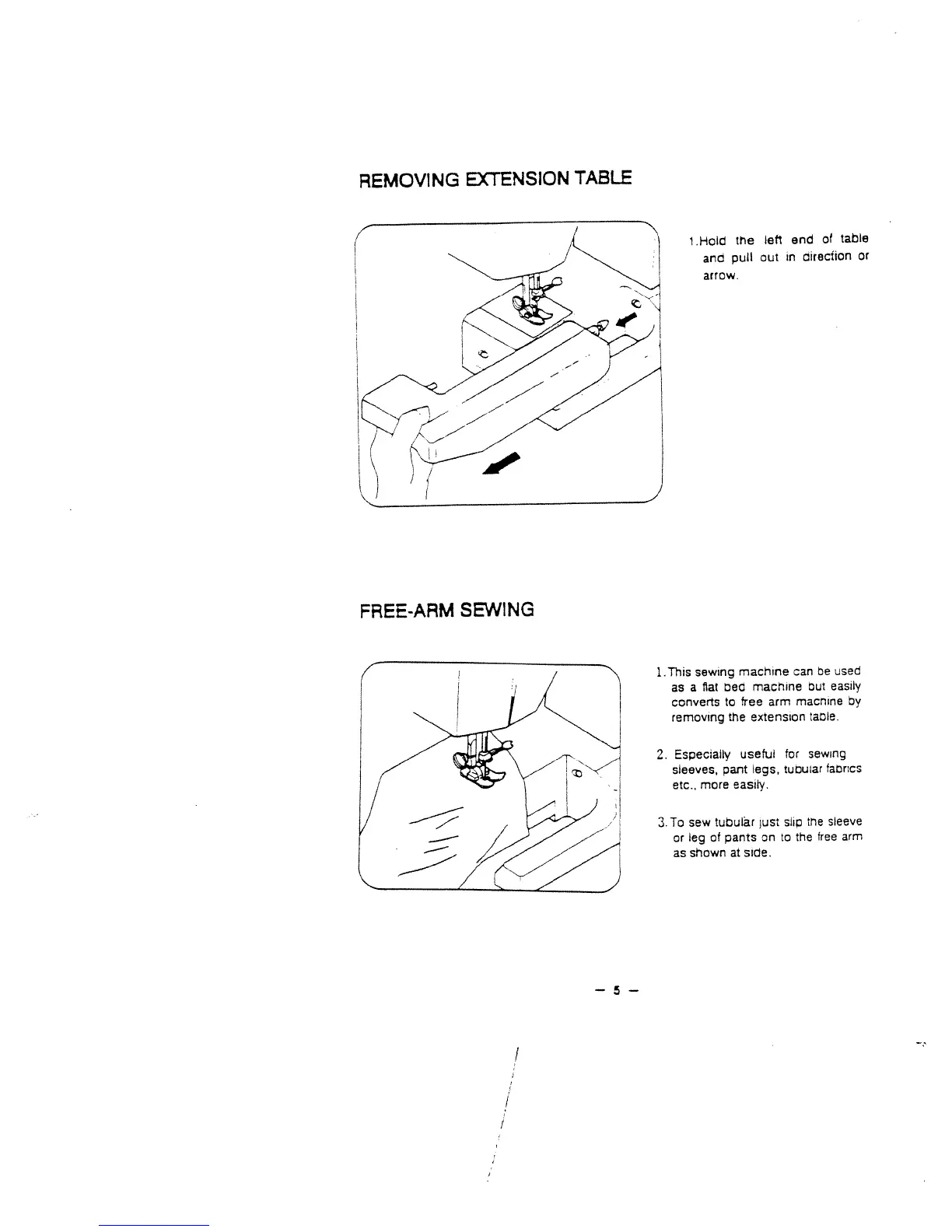 White 1409 white - Removing Extension Table; Free-Arm Sewing