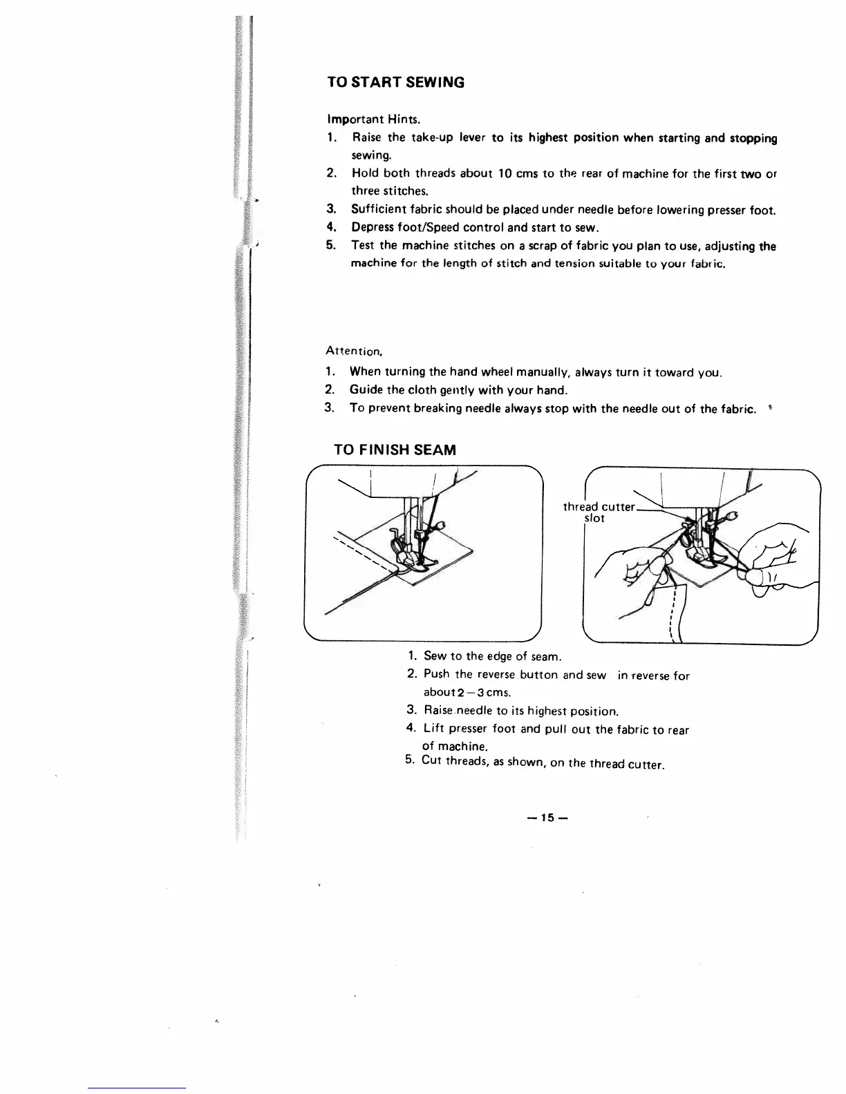 White 1477 - Sewing Procedures; Starting the Sewing Process; Finishing a Seam