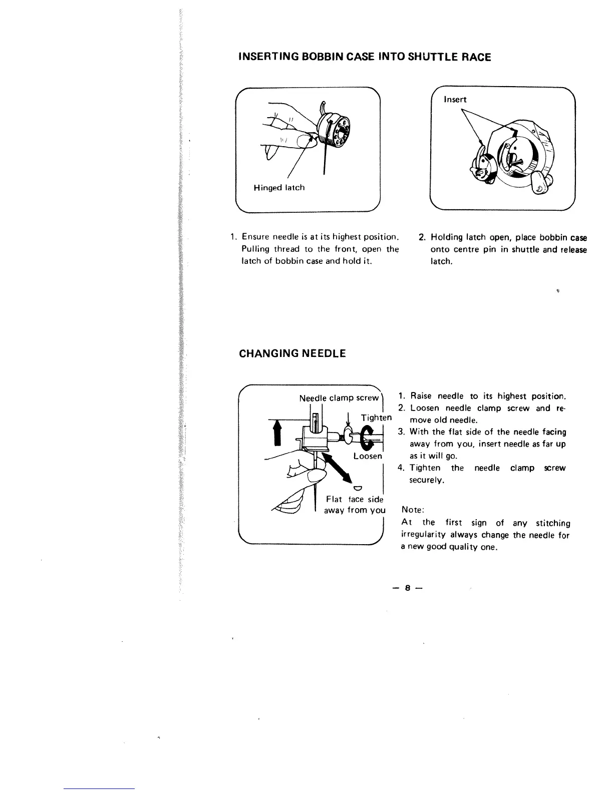 White 1488 - Inserting Bobbin Case into Shuttle Race; Changing the Sewing Needle