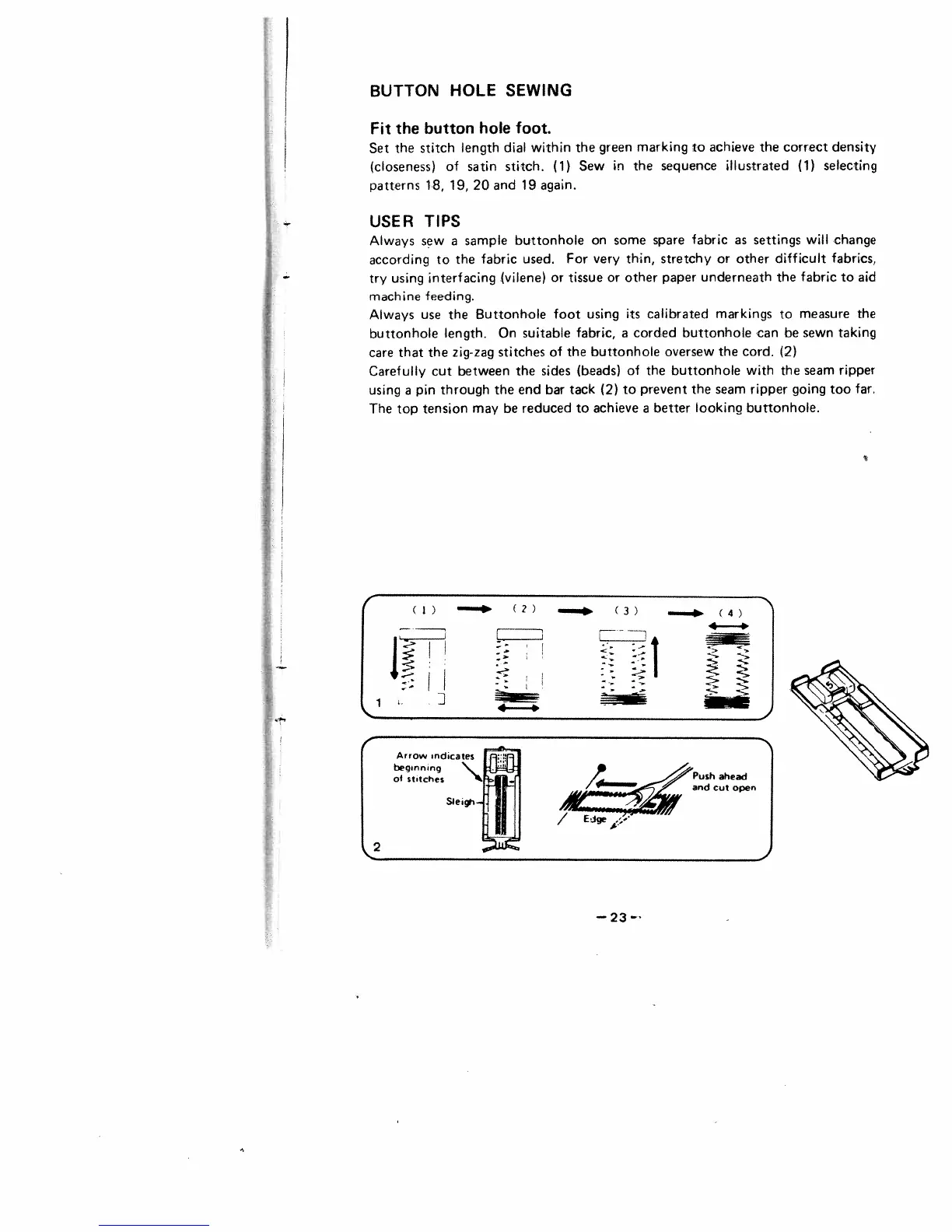 White 1488 - Button Hole Sewing; User Tips for Buttonhole Sewing