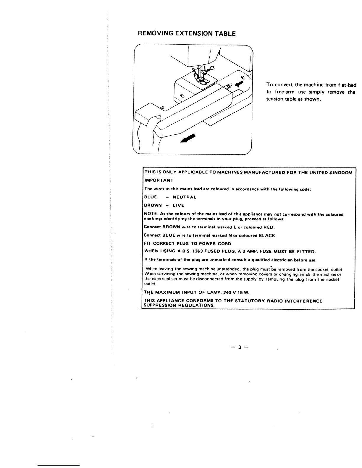 White 1488 - Removing the Extension Table; UK Electrical Safety Guidelines