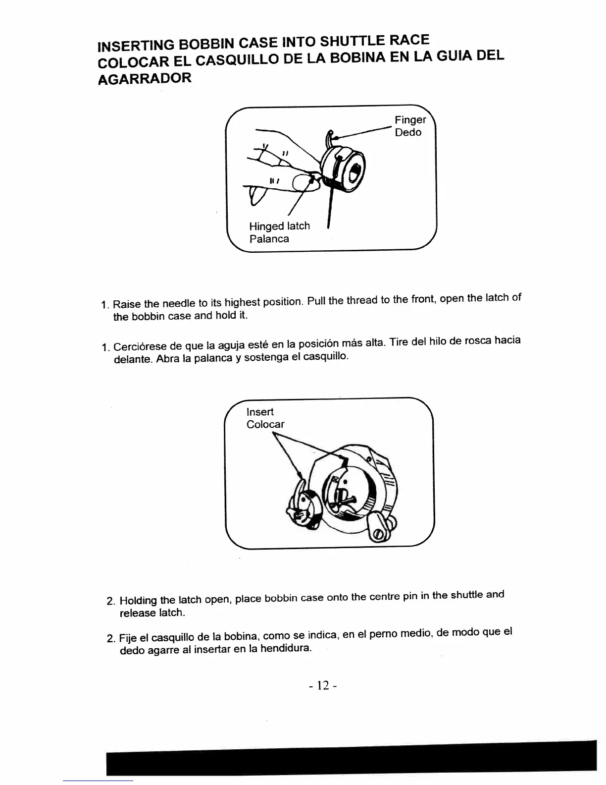 White 1521 - Inserting Bobbin Case into Shuttle Race