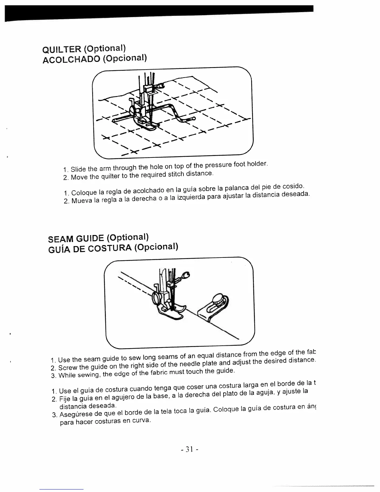 White 1521 - Using the Quilter Attachment; Using the Seam Guide