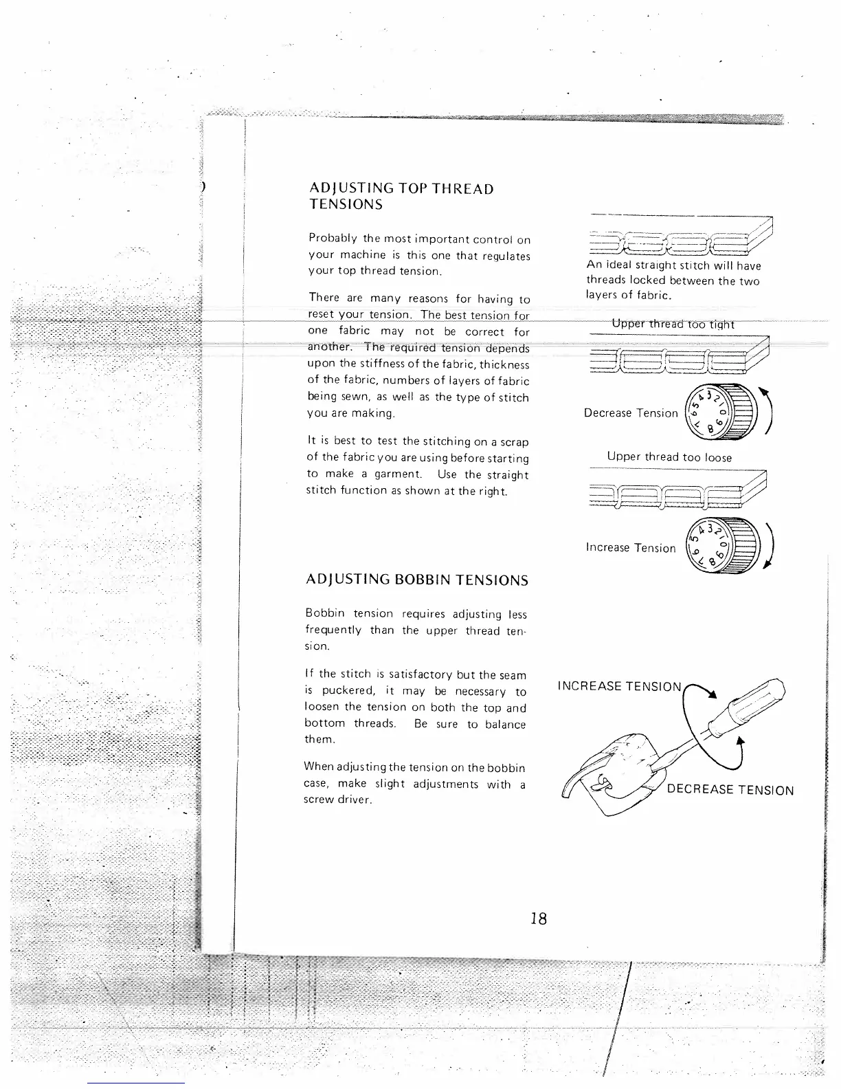 White 1550 - Thread Tension Adjustments; Top Thread Tension Settings; Bobbin Thread Tension Settings