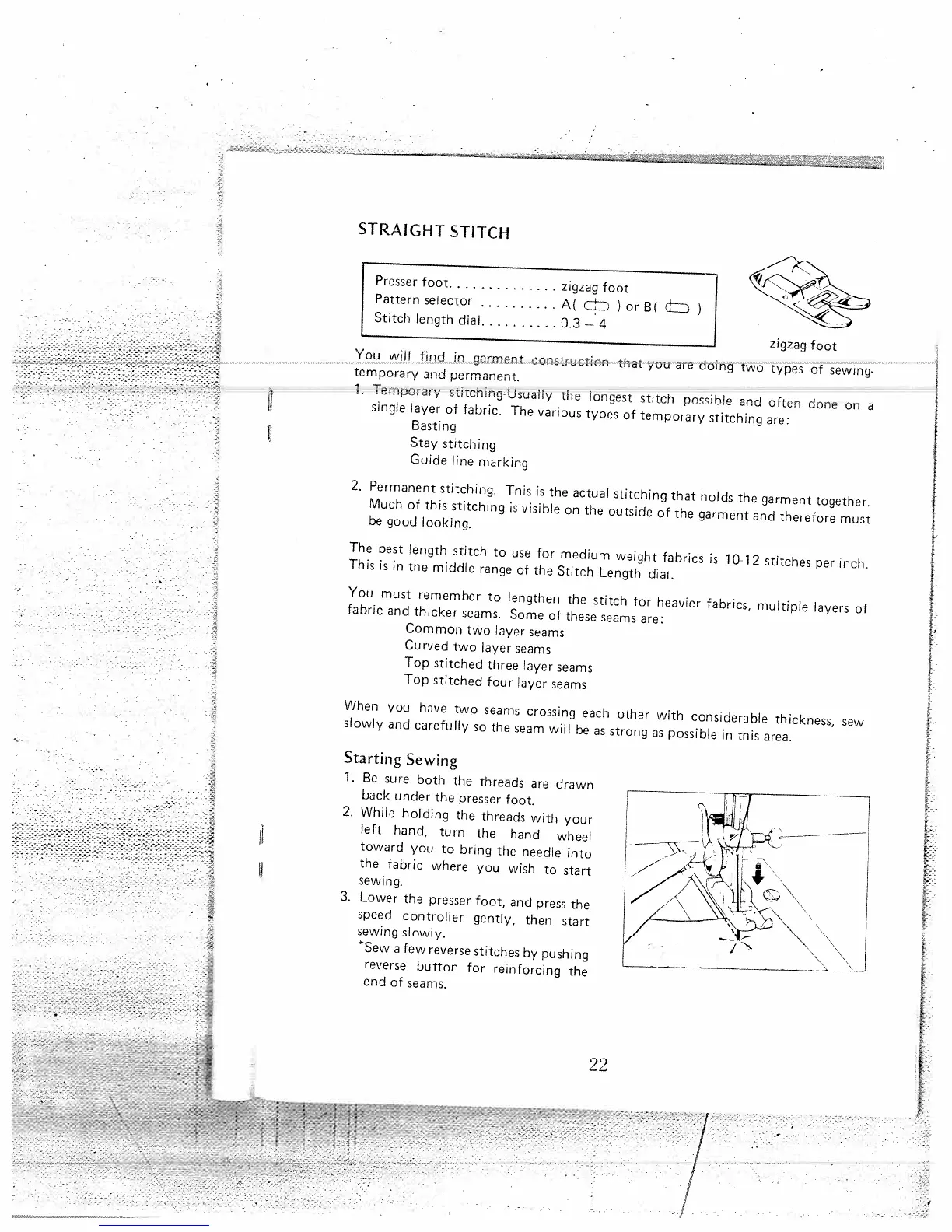 White 1550 - Straight Stitch Guide; Straight Stitch Procedures