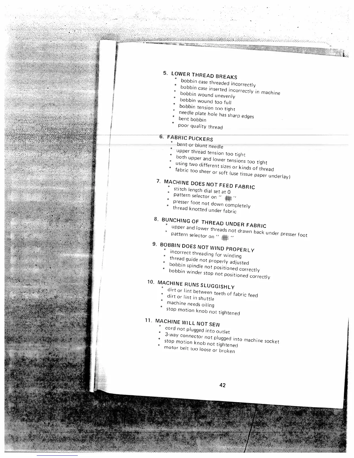 White 1550 - Advanced Troubleshooting; Thread Breaks and Fabric Puckering; Fabric Feed and Machine Sluggishness; Machine Not Sewing Troubleshooting