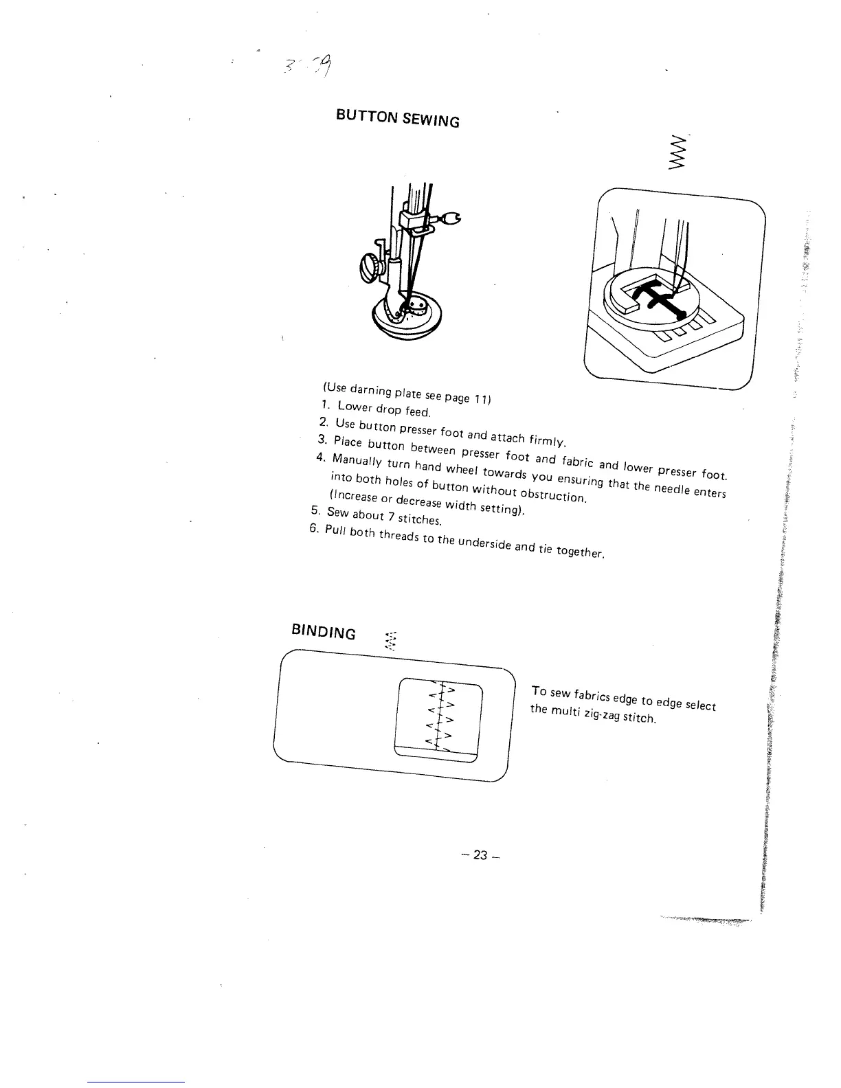 White 1620 - Button Sewing Guide; Fabric Binding Technique
