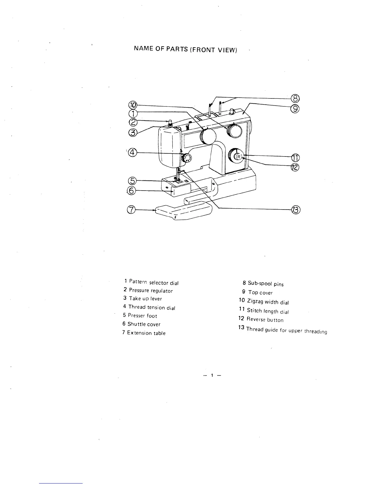 White 1620 - Product Front View and Parts; Name of Parts (Front View)