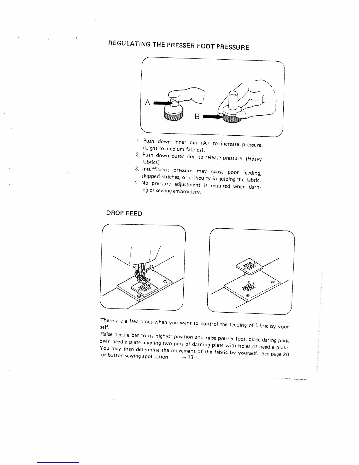 White 1630 - SEWING MECHANISM ADJUSTMENTS; Regulating Presser Foot Pressure