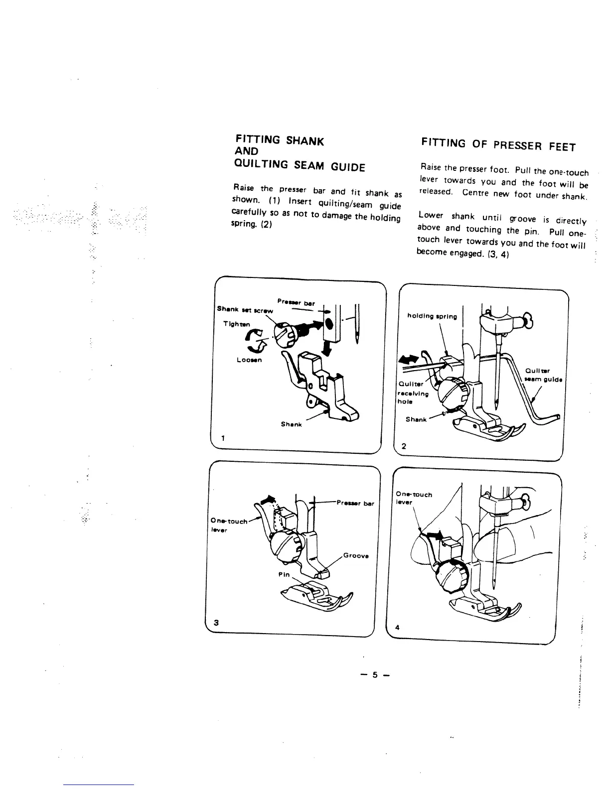 White 1632 - Fitting Shank and Quilting Seam Guide; Fitting of Presser Feet