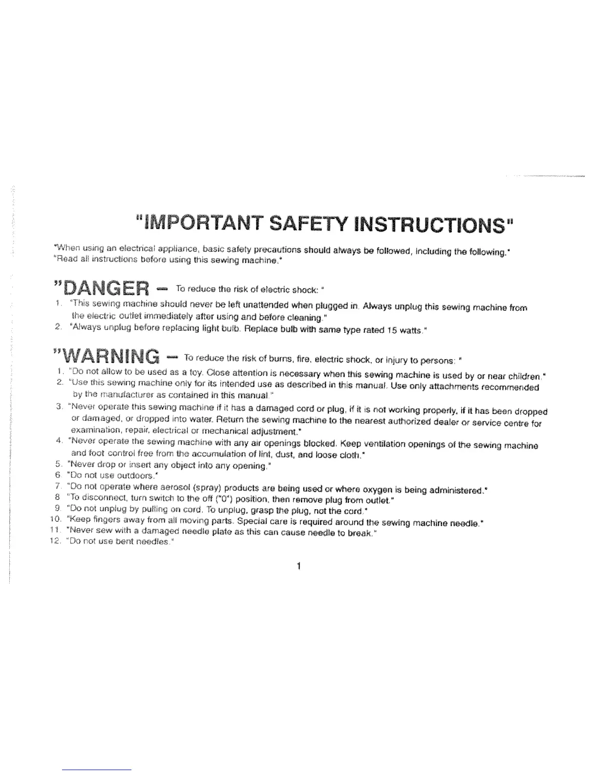 White 1730 - IMPORTANT SAFETY INSTRUCTIONS; DANGER; WARNING