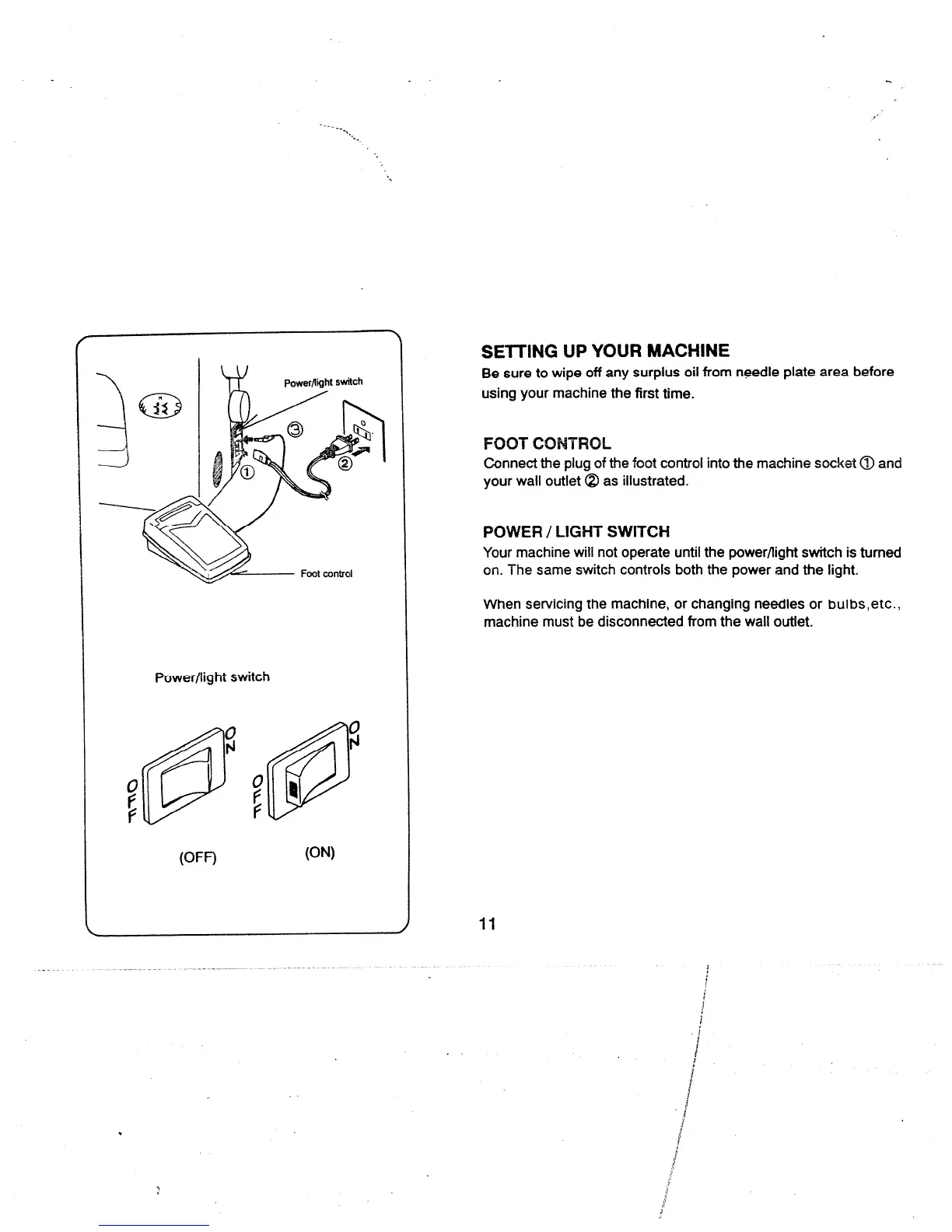 White 1740 - Setting Up Your Machine; Foot Control and Power;Light Switch