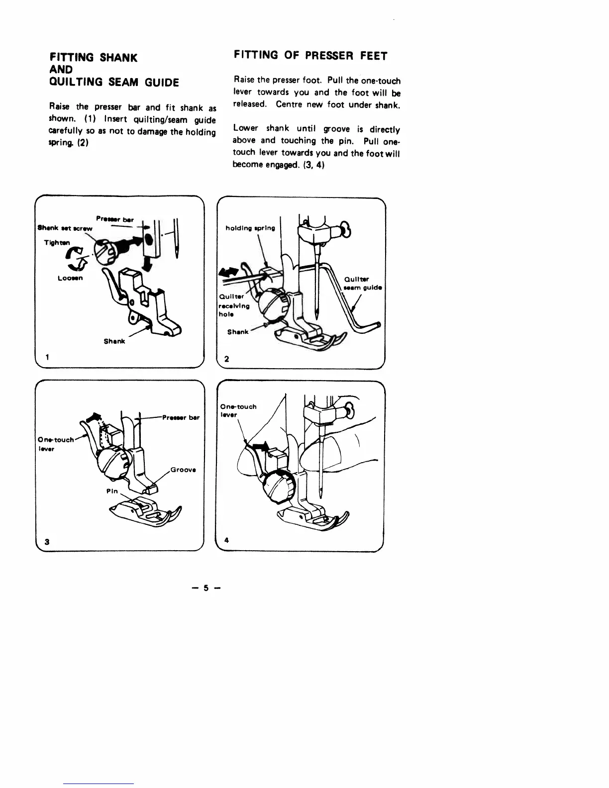 White 1766 - Fitting Shank and Quilting Seam Guide; Fitting of Presser Feet