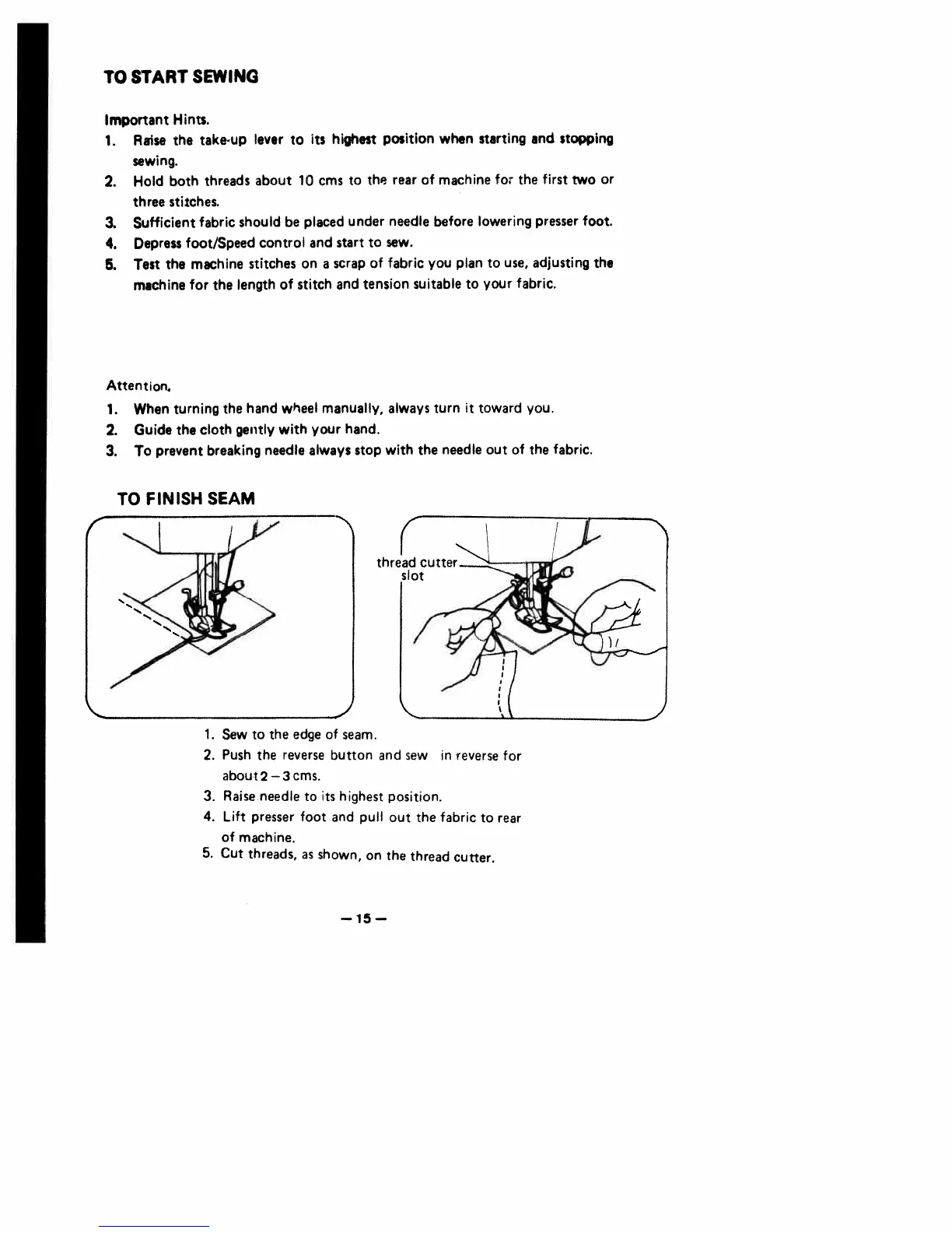 White 1766 - Starting and Finishing a Seam; Initial Sewing Steps and Seam Finishing