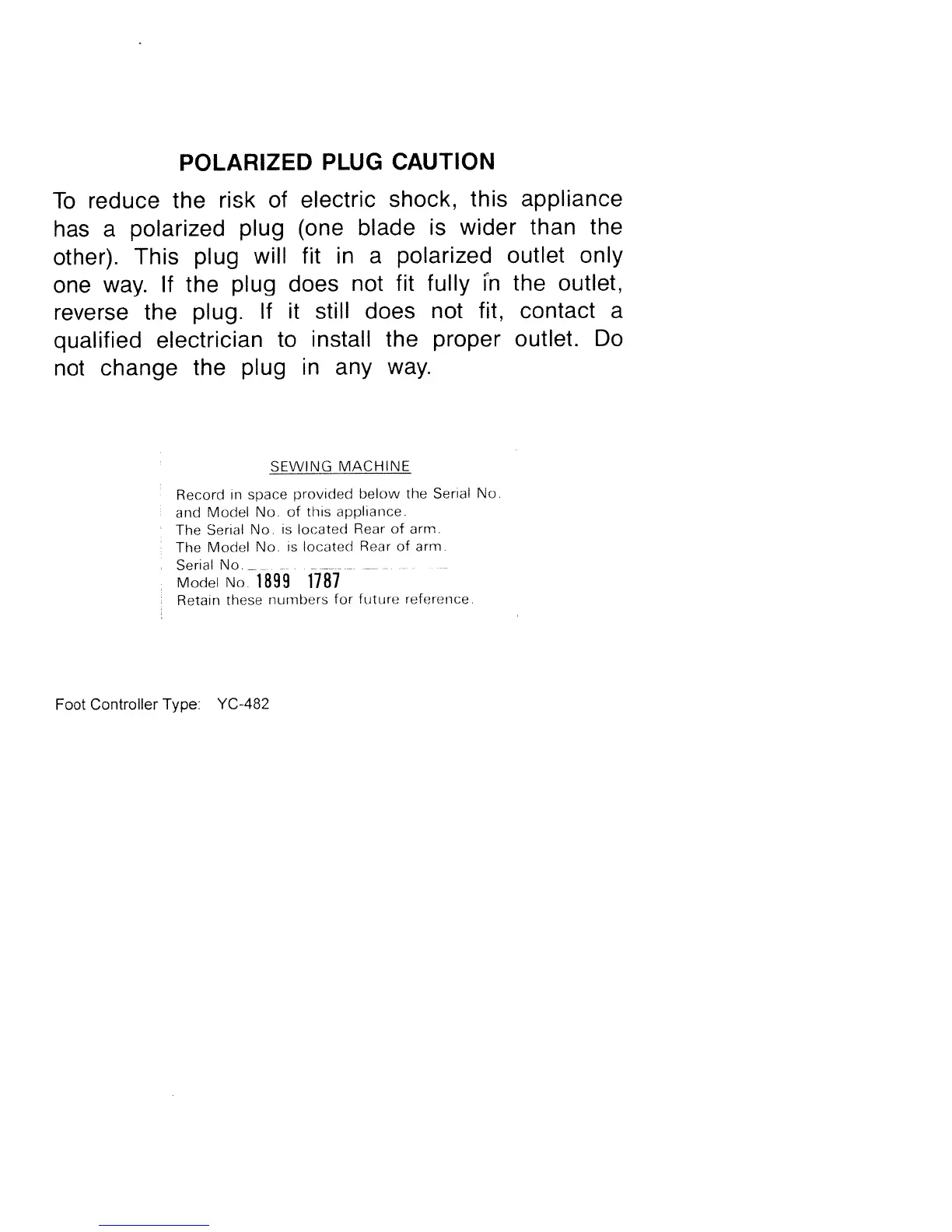 White 1787 - SAFETY INSTRUCTIONS; Polarized Plug Caution