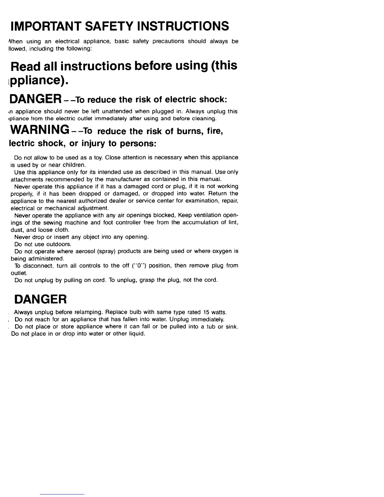 White 1787 - General Electrical Safety Precautions; Operational Safety Warnings