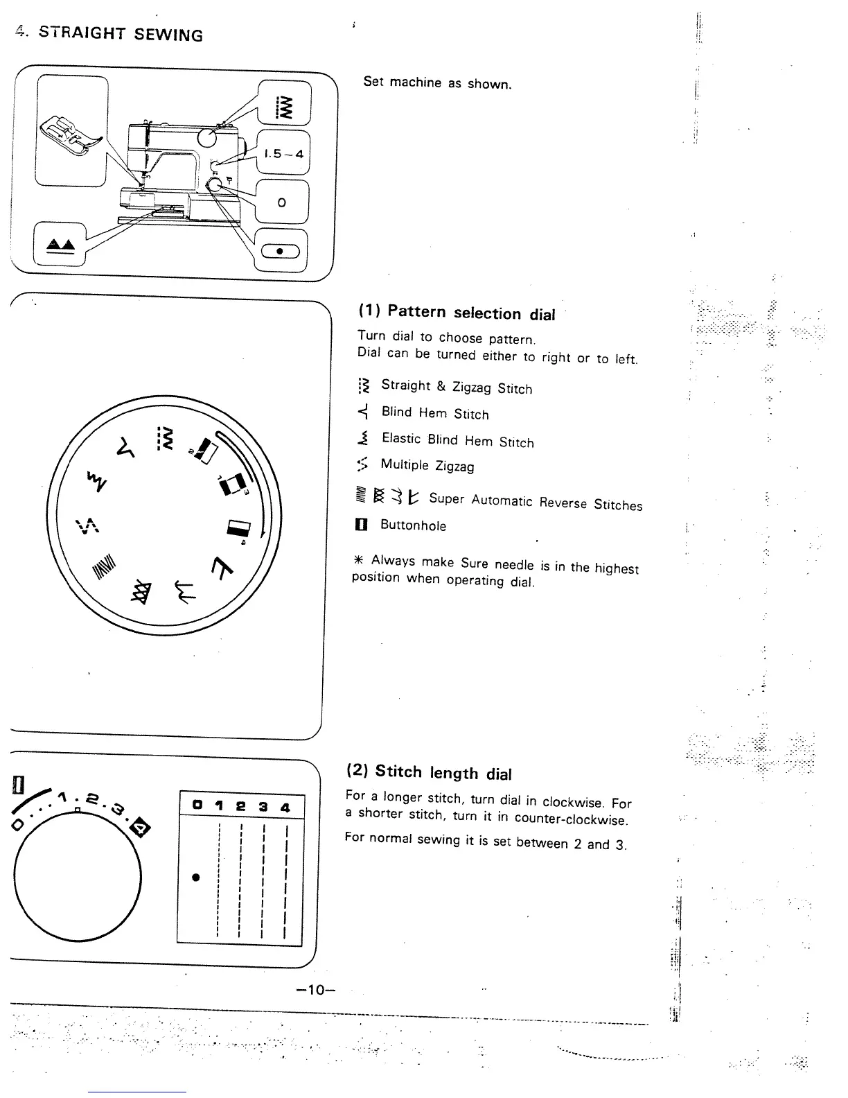 White 1810 - STRAIGHT SEWING; Pattern Selection Dial; Stitch Length Dial