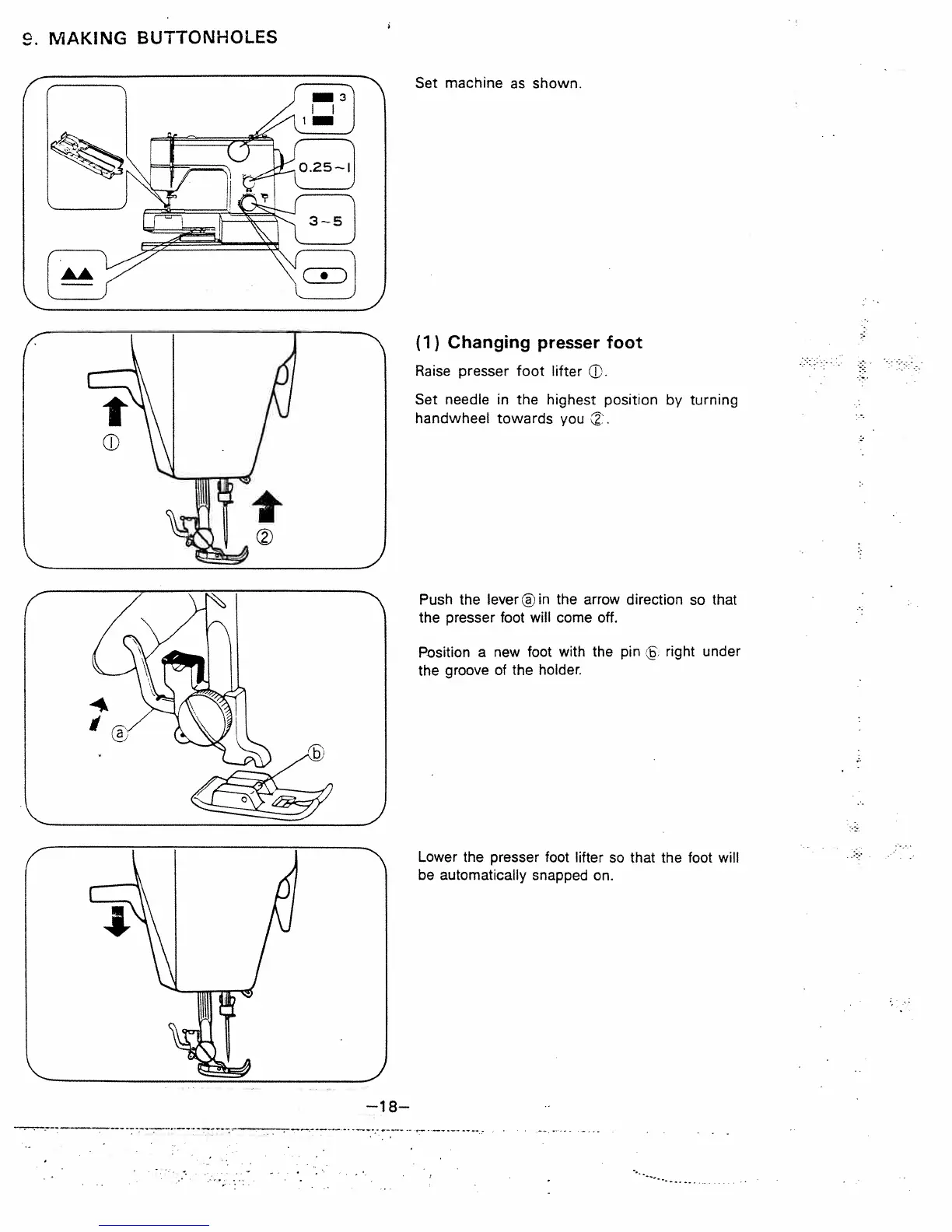 White 1810 - MAKING BUTTONHOLES; Changing Presser Foot