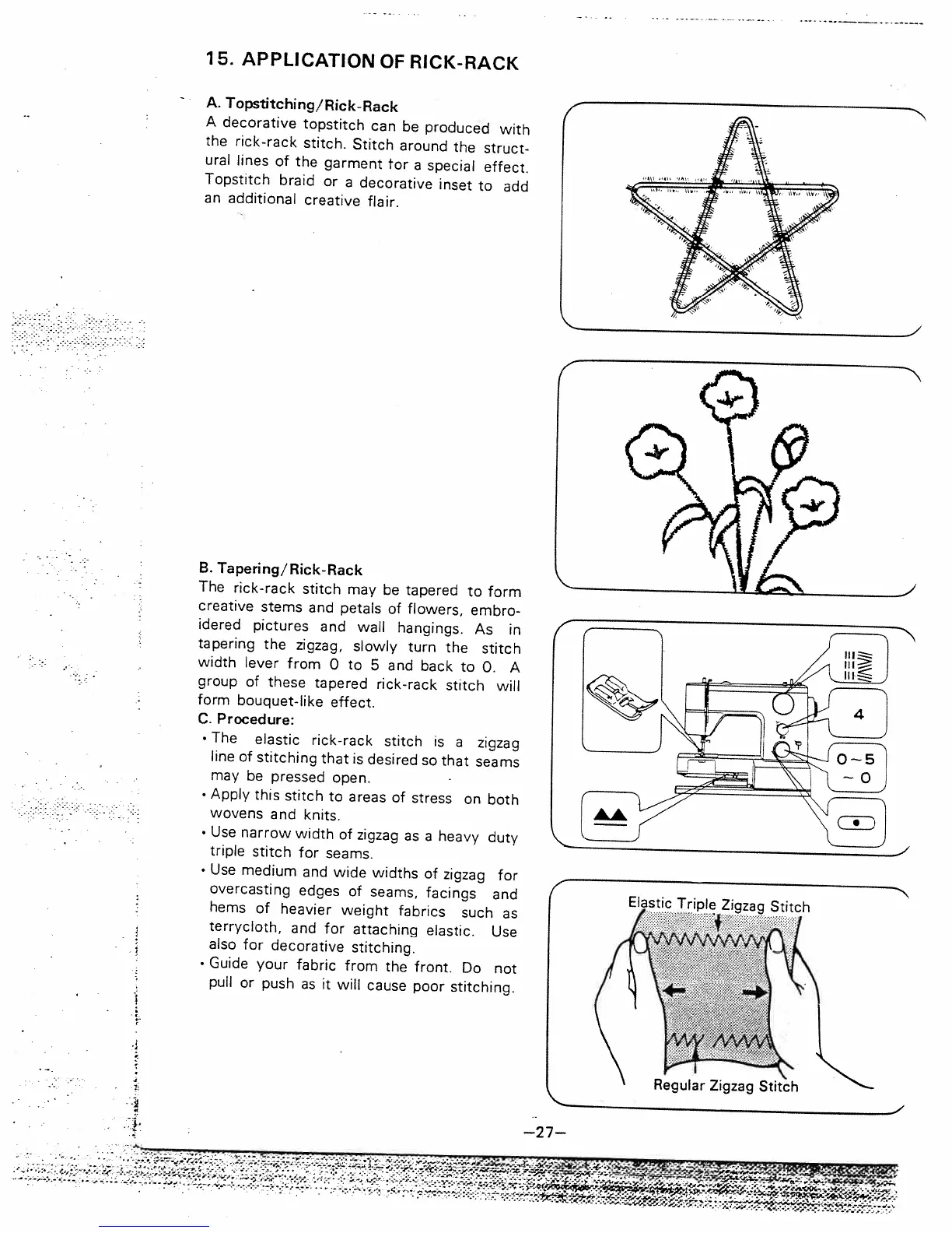 White 1810 - APPLICATION OF RICK-RACK STITCH; Topstitching and Rick-Rack Effects; Tapering Rick-Rack Stitch