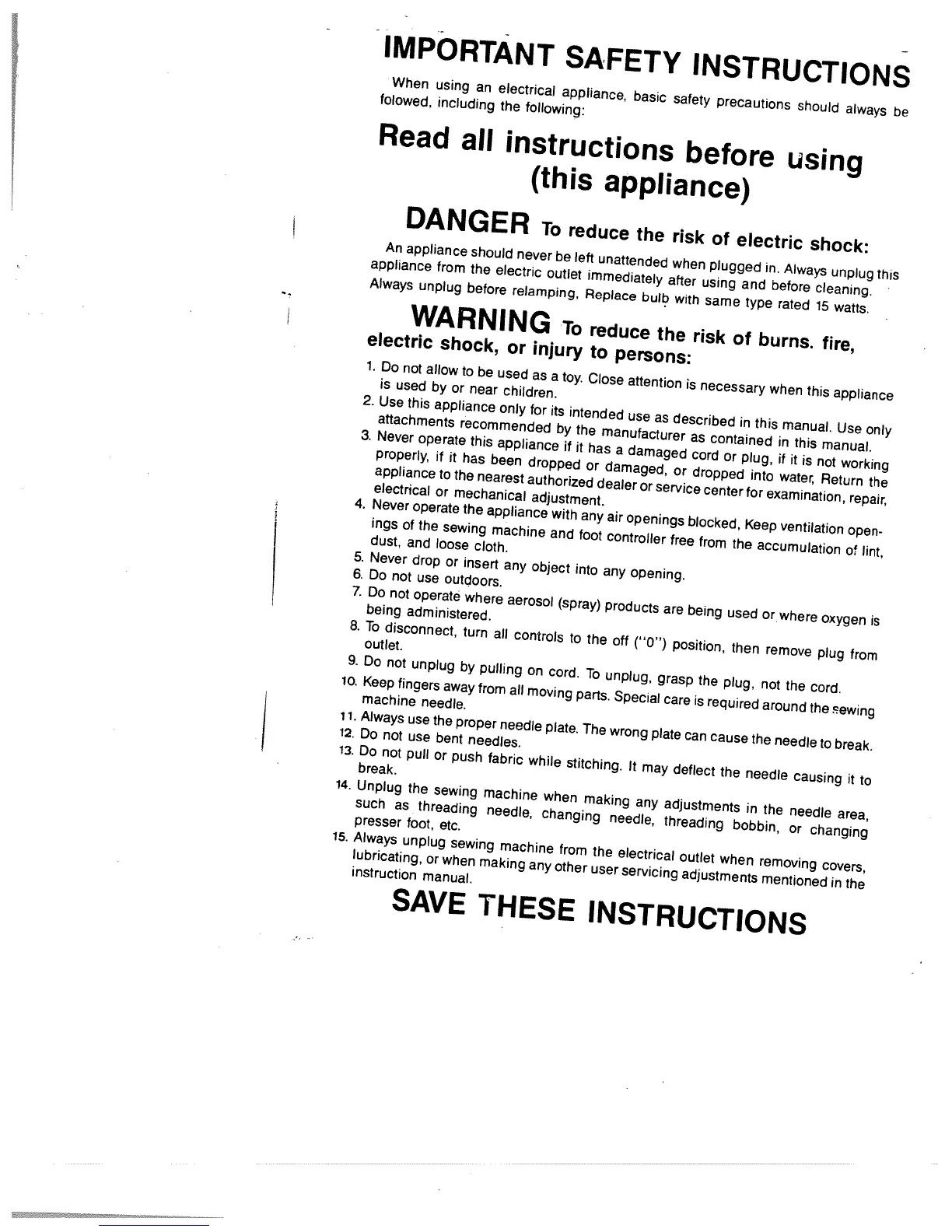 White 1855 - Sewing Machine Safety Guidelines; Electrical Shock Prevention; General Operational Safety Rules
