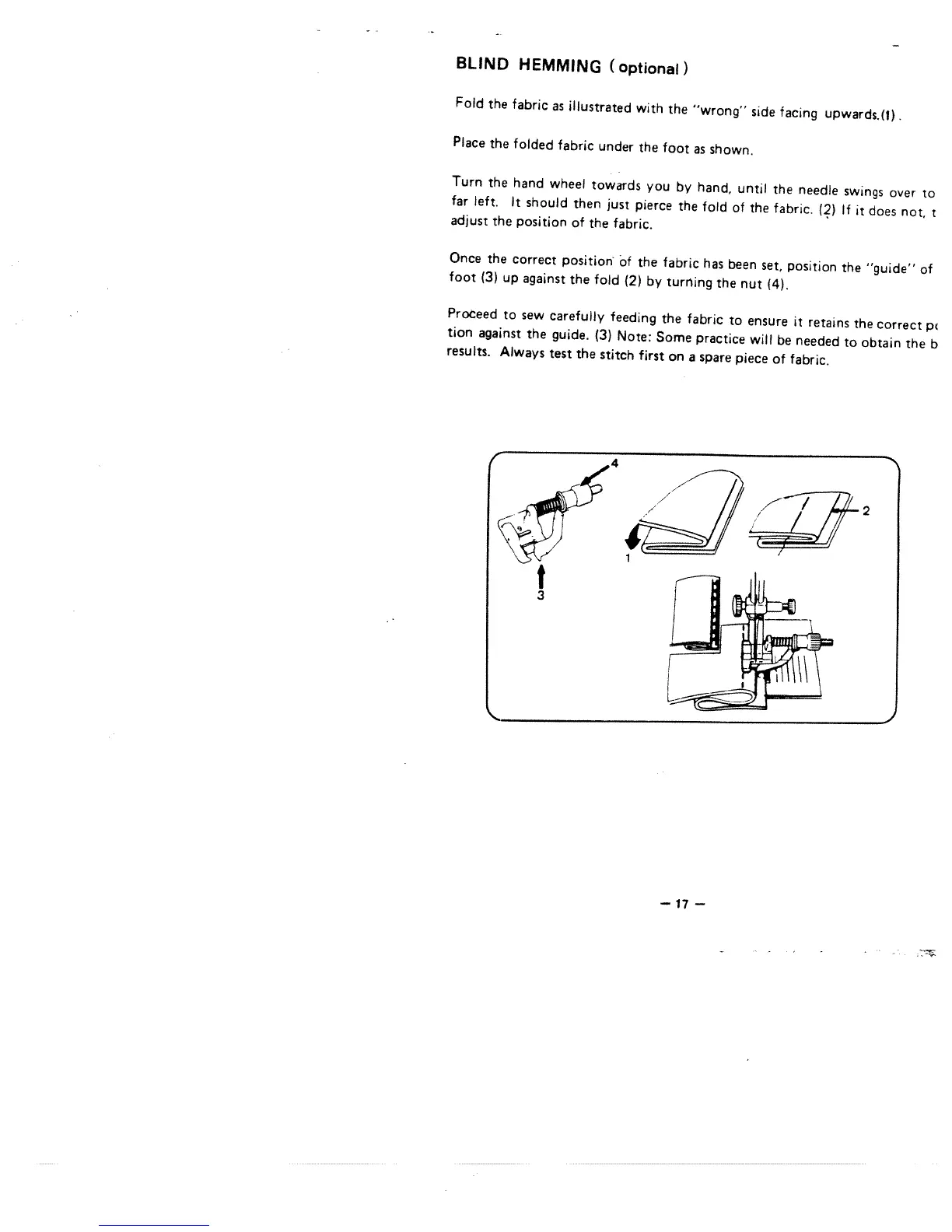 White 1855 - Blind Hemming Technique; Fabric Folding and Foot Adjustment for Hemming