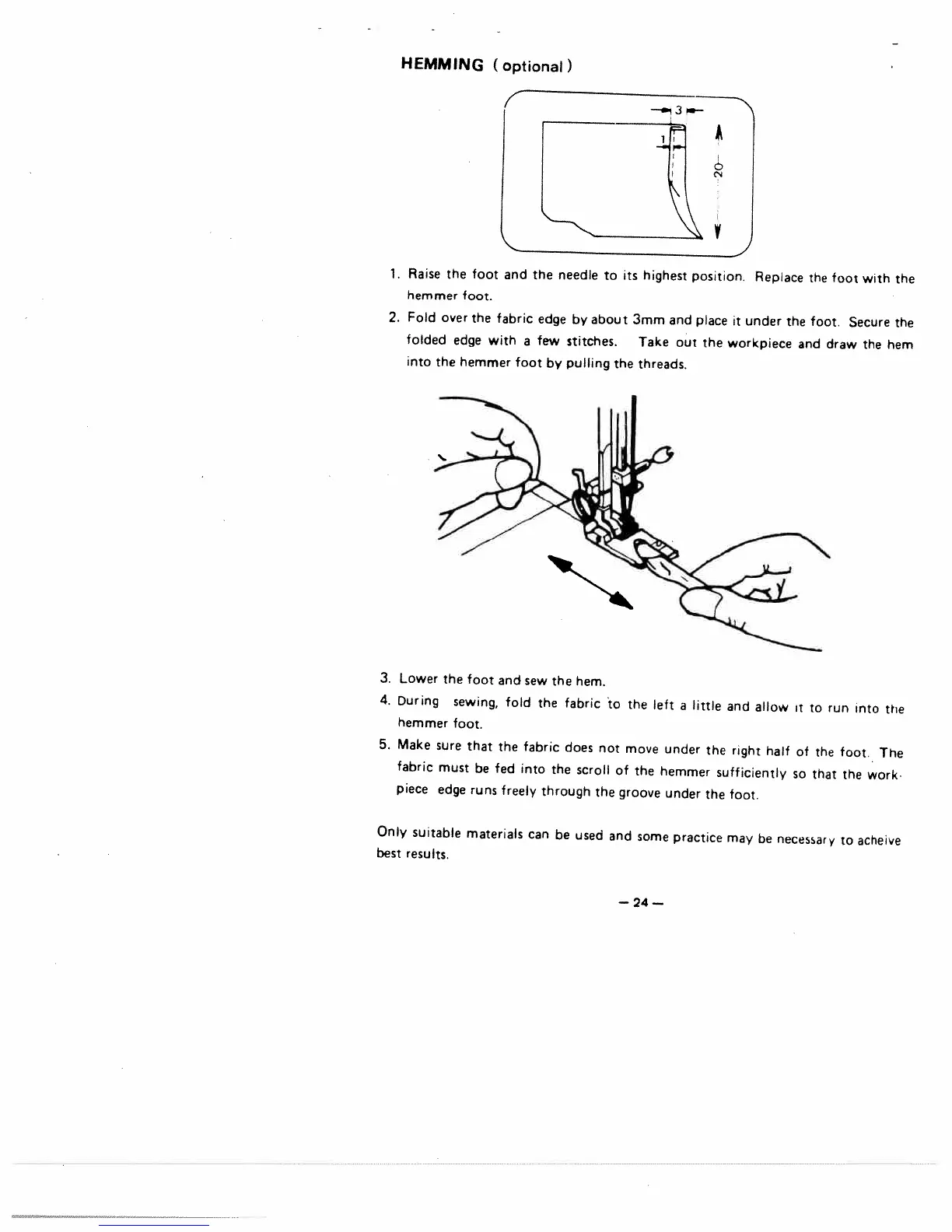 White 1855 - Hemming with Hemmer Foot; Fabric Folding and Guidance for Hemming