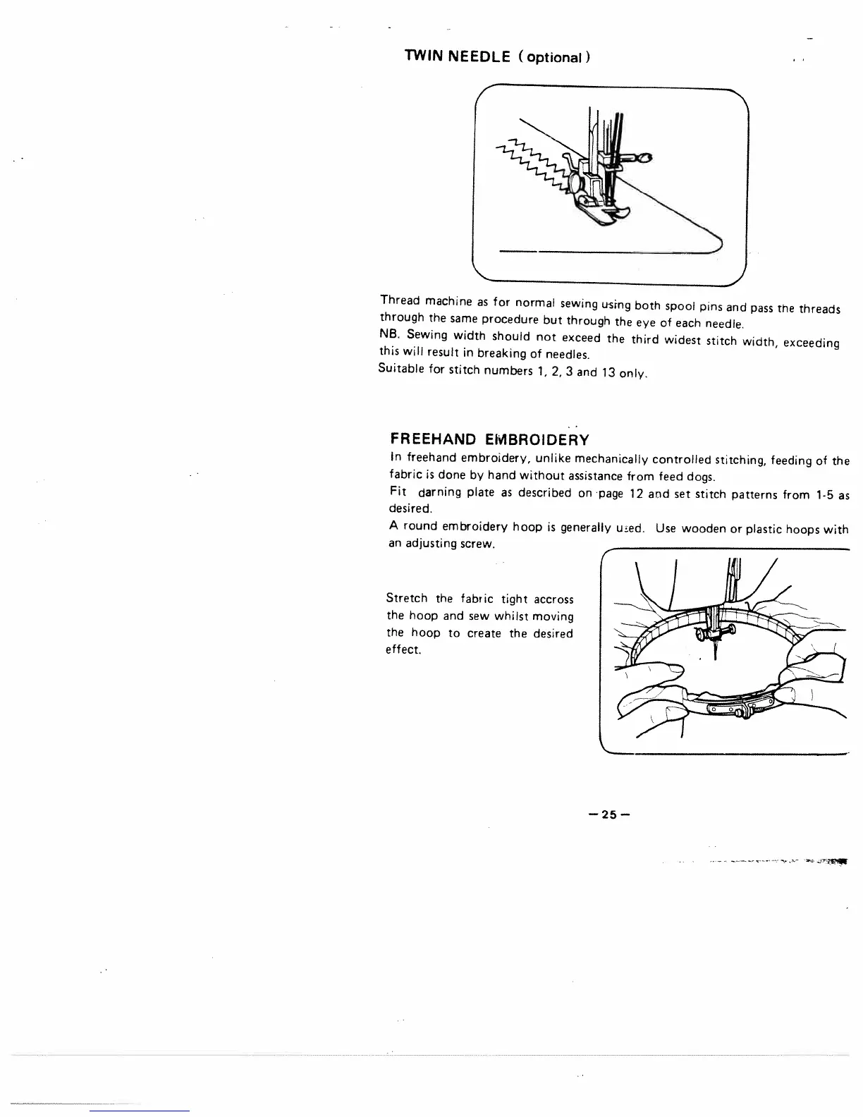 White 1855 - Special Sewing Techniques: Twin Needle and Embroidery; Twin Needle Sewing; Freehand Embroidery Method