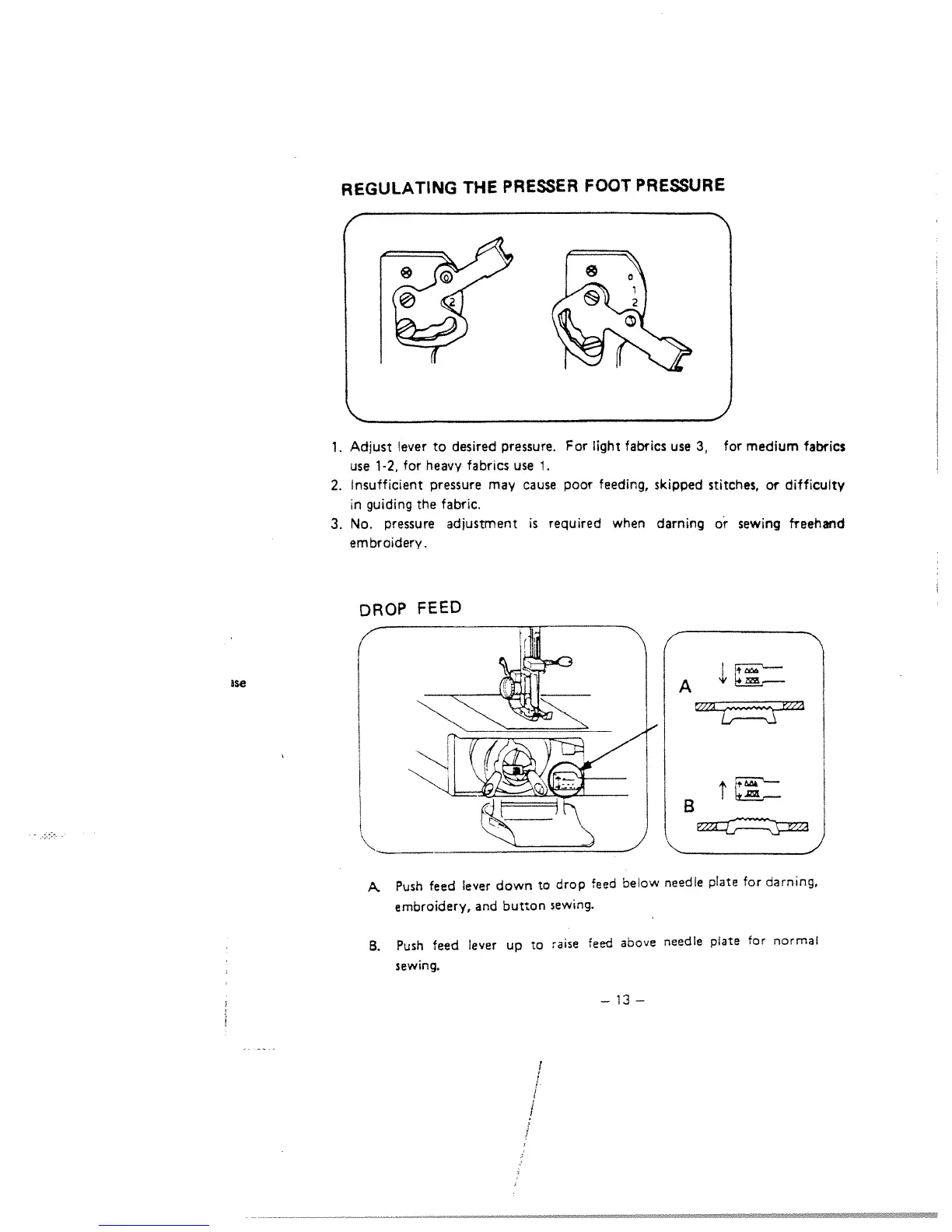 White 1866 - REGULATING PRESSER FOOT PRESSURE; DROP FEED OPERATION