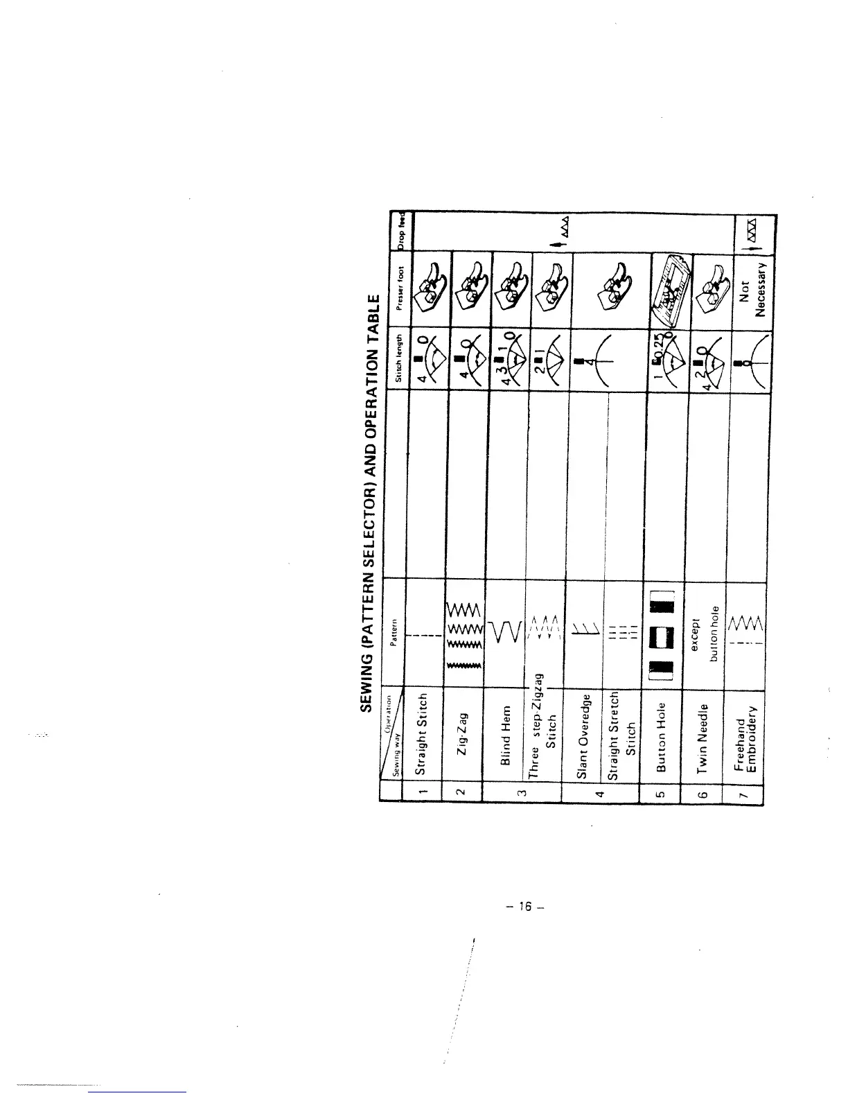 White 1866 - Sewing (Pattern Selector) and Operation Table