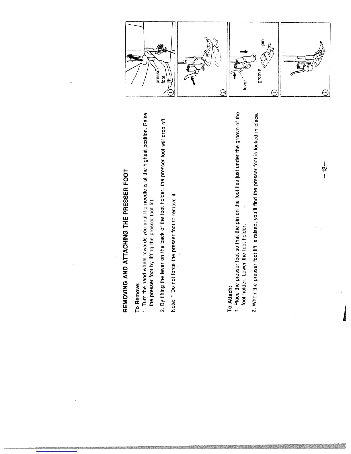 White 1911 - REMOVING AND ATTACHING THE PRESSER FOOT