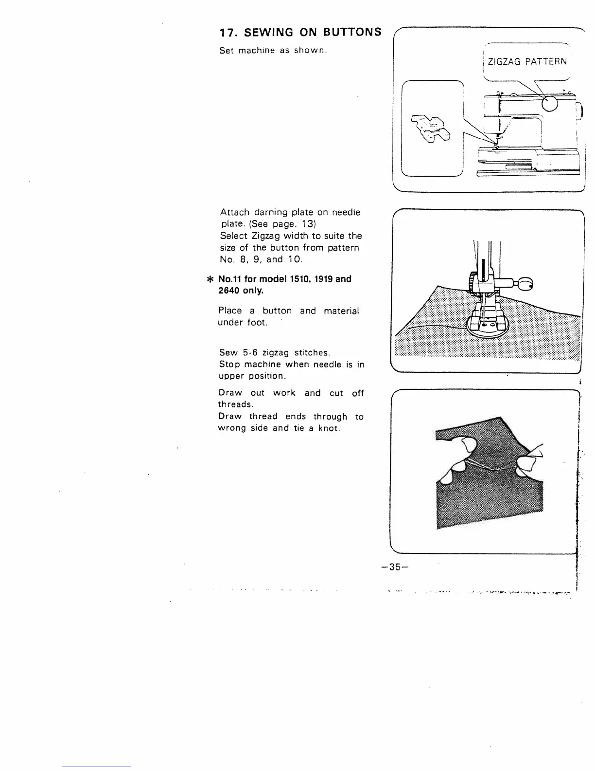 White 1919 - 17. SEWING ON BUTTONS; Button Sewing Procedure