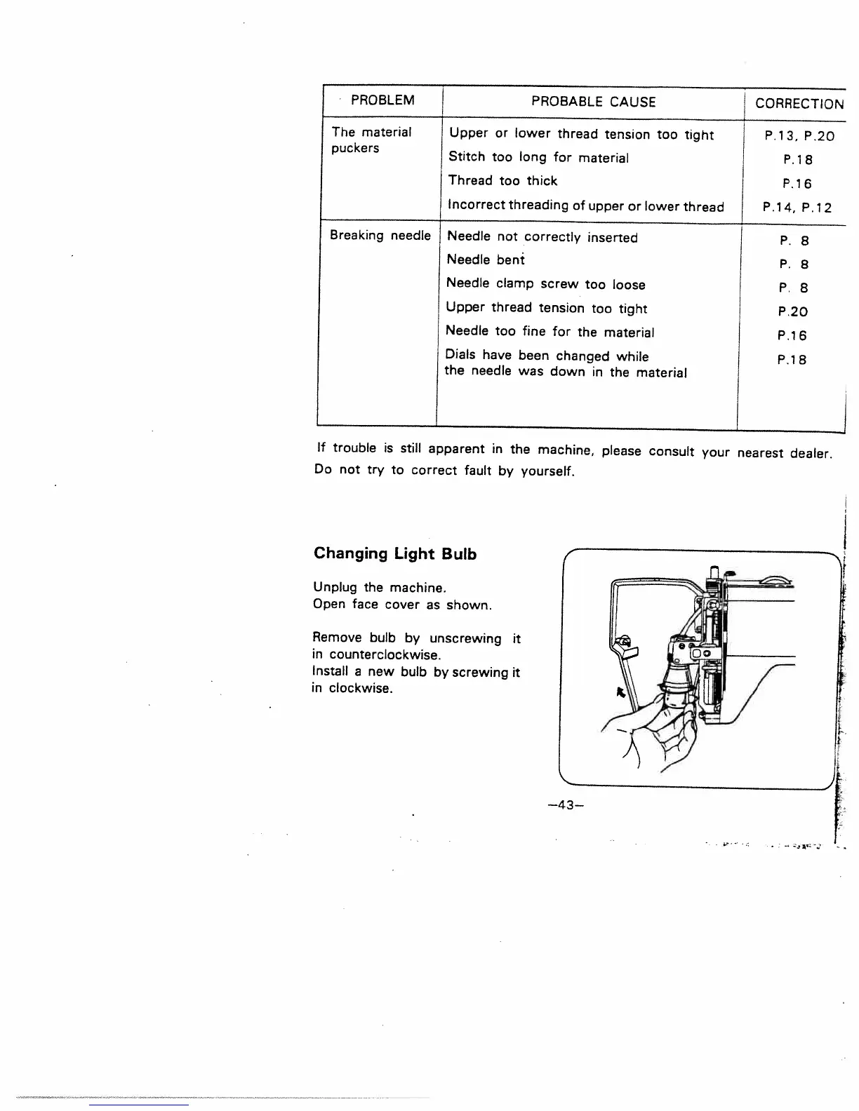White 1919 - The Material Puckers; Puckering Causes and Corrections; Breaking Needle; Needle Breaking Causes and Corrections