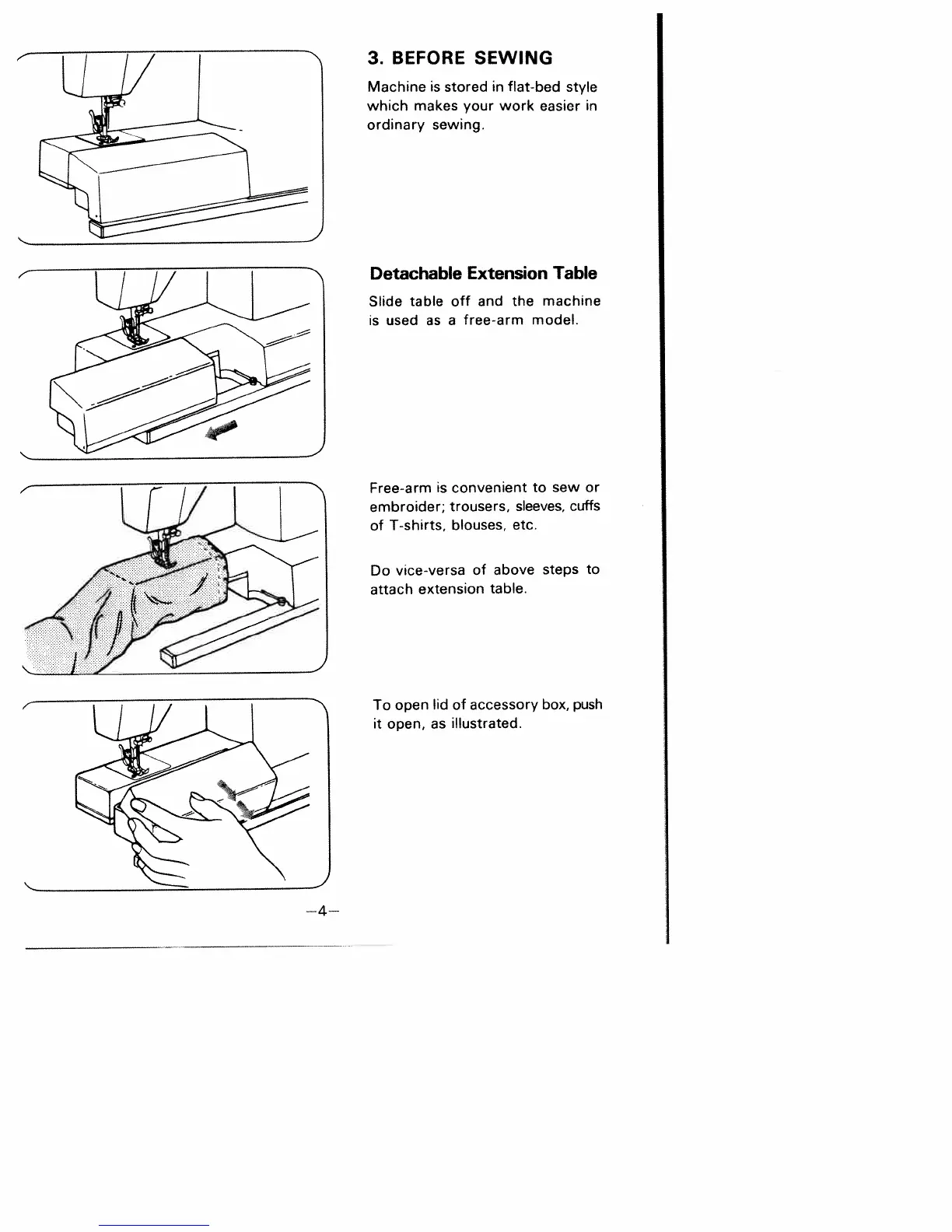 White 1927 - Getting Started: Before Sewing; Detachable Extension Table